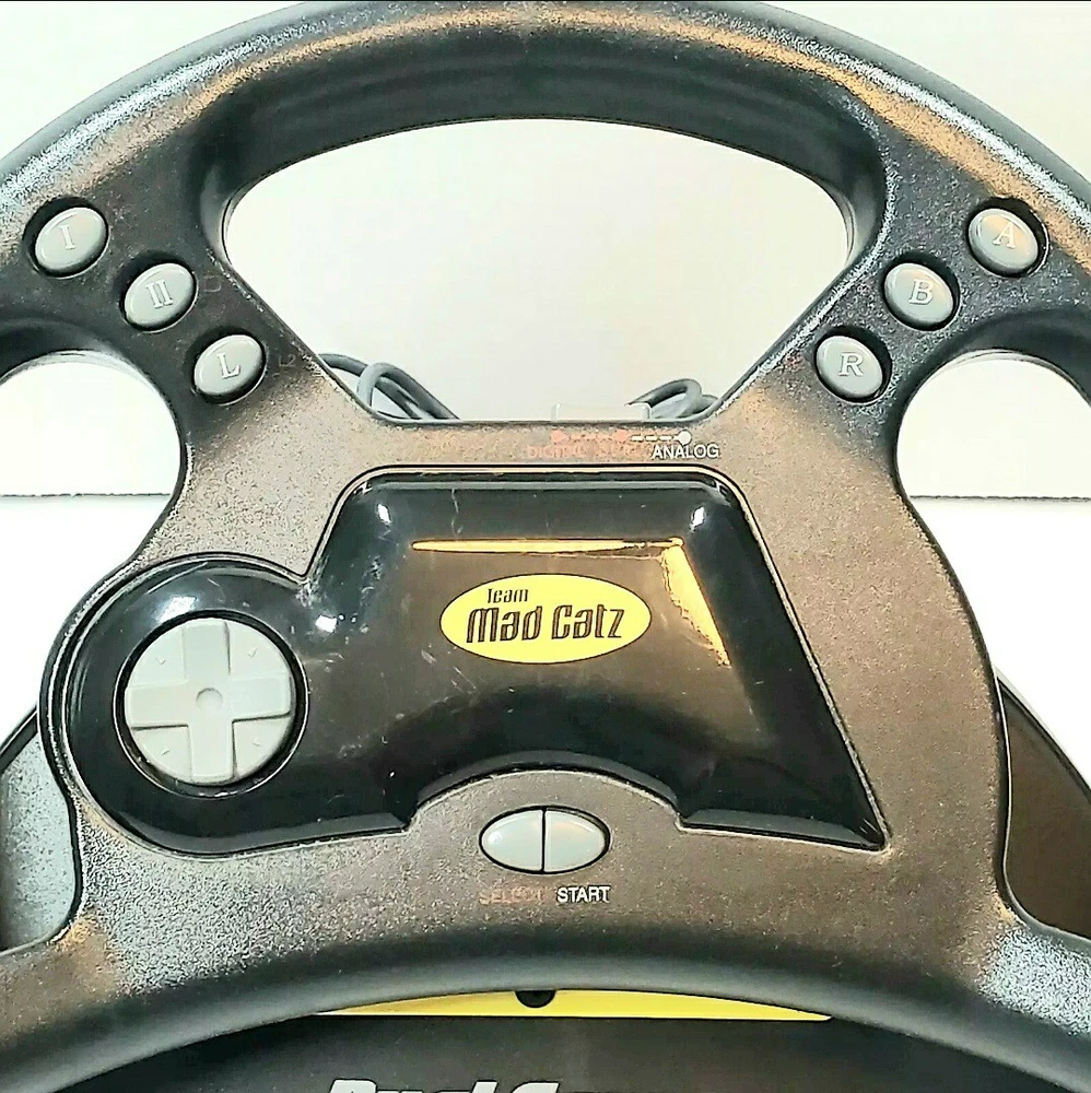 Team Mad Catz Dual Force Racing Steering Wheel/Pedals PS1 For PlayStation. Pre-Owned-Does Not Come with Oriignal Box! Note: Item weighs 7 pounds! Thank you for stopping by!