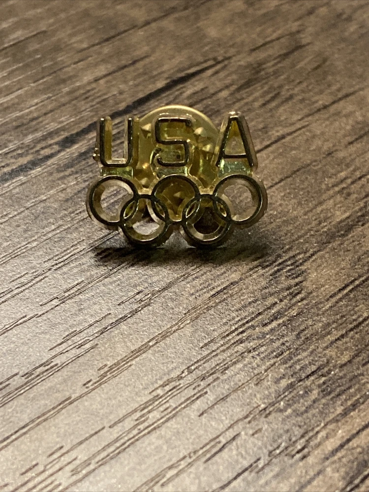 Team USA Olympic Lapel Hat Pin Gold Tone Lettering Open Design Rings et.