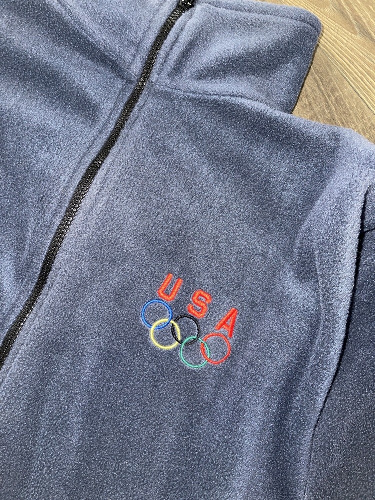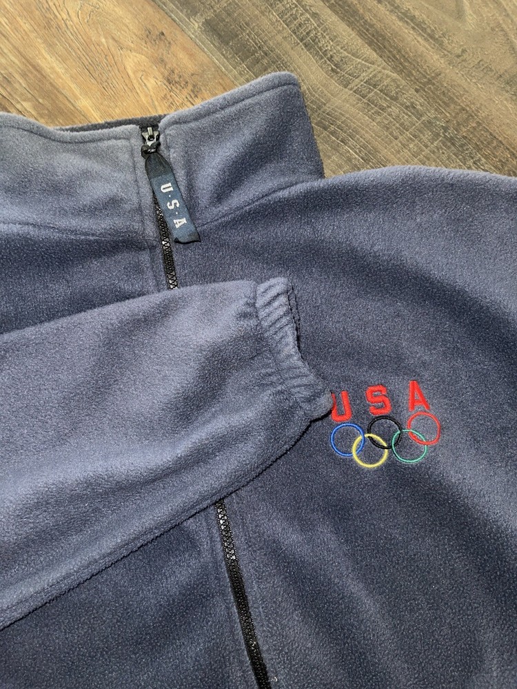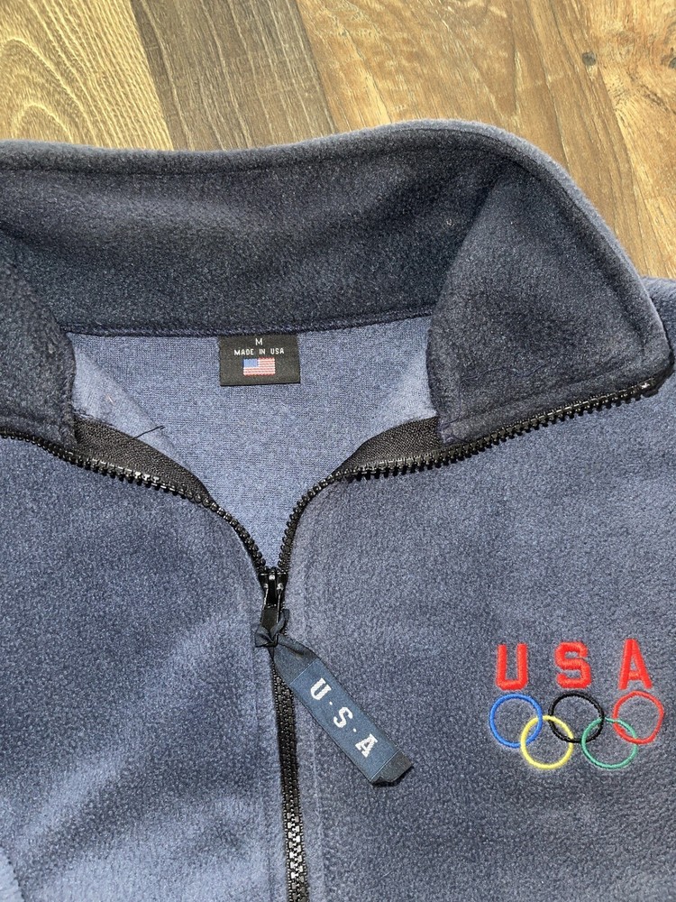 -Pit to pit measures 21 inches -length is 26 inches This Team USA Olympics Jacket is a perfect addition to your wardrobe. Made from polyester fleece, it features a full zip closure, stand-up collar, long sleeves, and embroidered accents including the Team USA logo. The blue color and solid pattern make it a versatile piece for casual or travel occasions during winter, fall, and spring. This vintage jacket, manufactured between 1990-1999 by the United States Olympics Committee, is machine washable and has polyester lining and insulation material. The athletic fit is suitable for men of size M. The jacket has no personalization, model, or any mention of the pre-owned condition. Show your support for the USA and Olympics with this unique jacket.