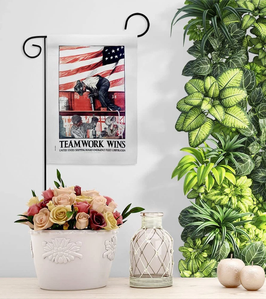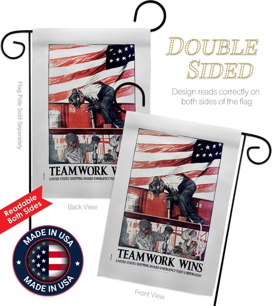 Teamwork Wins Garden Flag Set Wall Holder Armed Forces Navy USN Seabee United...