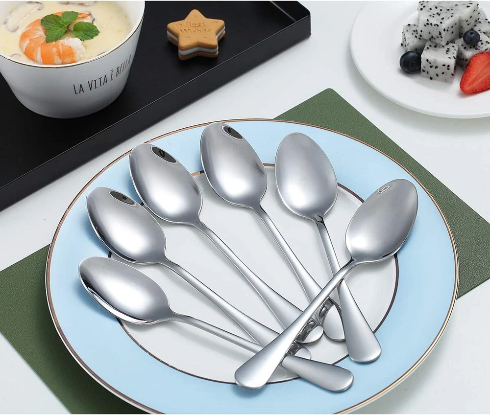 Store New Arrivals Add to Favorite View Feedback Contact Teaspoons, 6 Pieces 6.7" Stainless Steel Teaspoons, Dessert Spoon,Golden Teaspoon,Spoon Silverware Pack of 6 Description Item model number 1010TS.S6 Style Classic Color 1. 6 pieces silver Material Stainless Steel Is Dishwasher Safe Yes Item Weight 7 ounces Material Type Free Bpa Free,Lead Free Package Dimensions 9.41 x 3.62 x 0.98 inches Number of Pieces 6 Set of 6 pieces teaspoon 6.7": These stainless steel tea spoon pack of 6 pieces heavy duty and durable. Great for daily use, hotel, restaurant, special events. Made of premium high quality stainless steel, BPA free / lead free, Rust-resistant, sturdy and durable for years. It is so beautiful and nice to be a ideal gift. Classic Design with smooth edge polish. Mirror finish on the surface looks shiny and beautiful. These teaspoons have a nice weight and size to grip comfortably. Made of sturdy stainless steel to last a use. Easy Clean and Dishwasher Safe Product Description Teaspoons, Kyraton 6 Pieces 6.7" Stainless Steel Tea Spoons, Dessert Spoon,Ice Cream Spoons, Coffee Spoon,Golden Teaspoon,Spoon Silverware Pack of 6 Set of 6 pieces teaspoon 6.7": These stainless steel tea spoon pack of 6 pieces heavy duty and durable. Great for daily use, hotel, restaurant, special events. Made of premium high quality stainless steel, BPA free / lead free, Rust-resistant, sturdy and durable for years. It is so beautiful and nice to be a ideal gift. Classic Design with smooth edge polish. Mirror finish on the surface looks shiny and beautiful. These teaspoons have a nice weight and size to grip comfortably. Made of sturdy stainless steel to last a use. Easy Clean and Dishwasher Safe Kyraton office and workcell Kyraton Office Building The office building covers an area of 3,000 square meters and includes office, product showroom, product design department, product testing, packaging design, etc. Kyraton Meeting Room The meeting room is used for employee meetings, employee training, important meetings, shareholder meetings, and important customer meetings. Kyraton Office Staff office space for company sales team, service team, develop team. Kyraton Warehouse The warehouse covers an area of 20,000 square meters. Kyraton Tableware Kryaton Tableware Kyraton focus on tableware and kitchenware development and design since 1991. Kyraton Stainless Steel Flatware Set Your Choice These stainless steel tea spoon pack of 6 pieces heavy duty and durable. Great for daily use, hotel, restaurant, special events. High Quality and Durable Material Made of high quality stainless steel, durable and will not bend, strong anti rust. Easy to clean and store Easy to clean and store, beautiful for daily use or as a gift, dishwasher safe. ABOUT US We offer the best prices around on high quality products. Our E-store includes media such as books, movies, music and games while offering electronics, toys, sporting apparel, clothing, tools, general home, garden items and more. SHIPPING We are always working hard to ensure your package arrives as soon as possible. Please understand that some factors like weather, high postal traffic, and the performance of shipping companies are outside of our control. We offer free shipping to the lower 48 states and ship within 2 business days of payment, usually sooner. We do not accept P.O. Boxes. Please provide a physical address. For shipping outside of the continental USA, we only use eBay's Global Shipping Program.The item is shipped to KY and then sent to the rest of the world. International customers are responsible for all duties and taxes. Continue to check out in order to calculate costs for shipping the item to your country. Messages regarding eBay's Global Shipping Program MUST be directed at eBay EXCLUSIVELY. RETURNS We offer a 30-Day Return Policy on items which you are not completely satisfied with. You have the option for a full-refund or an exchange of the item. No returns are available on items shipped outside of the USA. PAYMENT We accept PayPal. CONTACT US This page content is yet to come Please ad us to your favorite seller and visit again later Thank You CUSTOMER SATISFACTION We try our very best to make sure every customer is completely satisfied. If there's a problem, message us! We're happy to help. WE ACCEPT Copyright © 2021 AutoDS. | All Rights Reserved