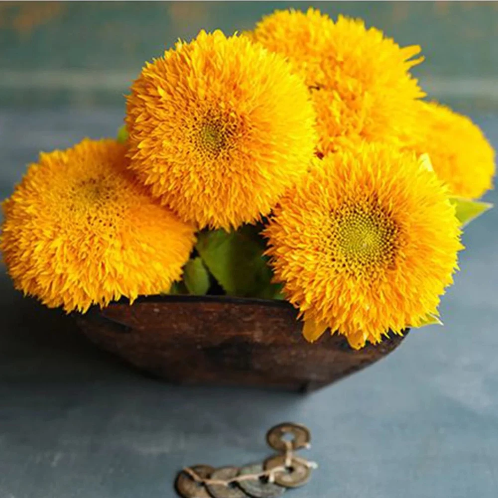 'Teddy Bear' Dwarf Sunflower is a short, bushy plant with fluffy, golden-yellow blooms that appear from mid-summer to the first frost in autumn. The petals are edible and suitable for culinary use. Excellent cut flowers for bouquets and flower arrangements. Species: Teddy Bear/Sungold Dwarf Height: 2-3 ft Country/Region of Manufacture: United States Type: Seeds Sunlight: Full Sun, Partial Shade Days to Germination: 7 - 14 Days to Bloom: 50-60 Germination Rate: 90% Seeds Packed For: 2022 Test Date: 10/21