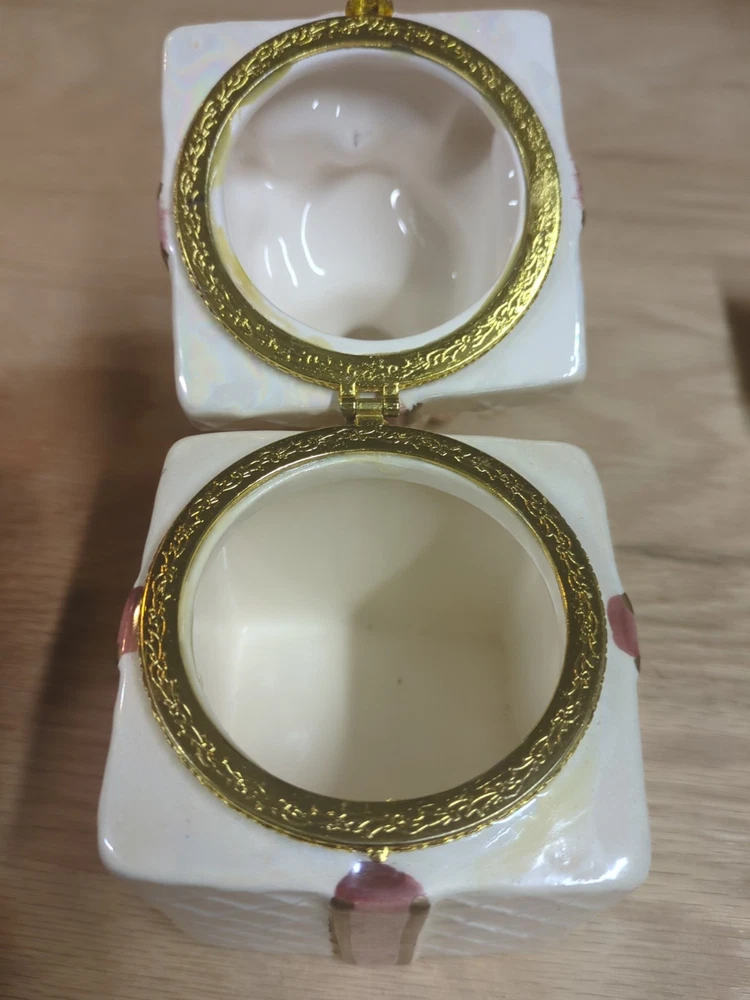 $ 7.4Limoges Porcelain Egg hinged Jewelry Box Smooth Glossy White Surface w/gold trim