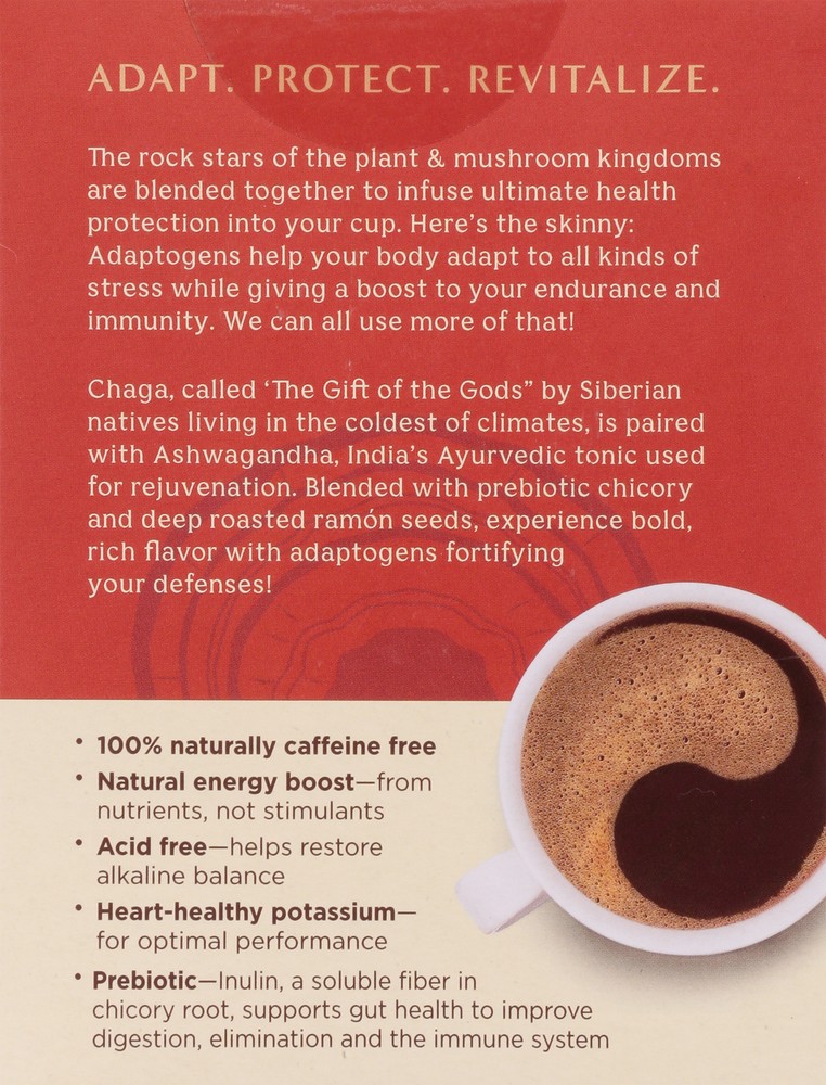 Teeccino Tea Ashwagandha Mushroom 10 Count (Pack of 6) Mushroom adaptogen blend. Gluten free. USDA Organic. Heart-healthy potassium - for optimal performance. Certified gluten free by the Gluten Free certifying organization, Vegan. Certified organic by QAI. Certified Gluten free. Gfco.org. Prebiotic. Caffeine free. 100% naturally caffeine free. 3x more herbs. Mushroom herbal tea. Buttercotch cream. Acid free. Adapt. Protect. Revitalize. The rock stars of the plant & mushroom kingdoms are blended together to infuse ultimate health protection into your cup. Here's the skinny: Adaptogens help your body adapt to all kinds of stress while giving a boost to your endurance and immunity. We can all use more of that! Chaga, called The Gift of the Gods by Siberian natives living in the coldest of climates, is paired with Ashwagandha, India's Ayurvedic tonic used for rejuvenation. Blended with prebiotic chicory and deep roasted ramon seeds, experience bold, rich flavor with adaptogens fortifying your defenses! Natural energy boost - from nutrients, not stimulants. Acid free - helps restore alkaline balance. Prebiotic - Inulin, a soluble fiber in chicory roots, supports gut health to improve digestion, elimination and the immune system. More Health Benefits in Every Cup: Chaga, Siberia's heal-all wild mushroom, compliments roasted ramon seeds and chicory softened by creamy butterscotch from India's restorative ashwagandha root. 6g tea bag = 3x more herbs = bold flavor and more health benefits! Product of the USA. Features: • Brand: Teeccino • Ingredients: Carob Pods (Certified Organic), Chicory Root (Certified Organic), Ramon Seed (Certified Organic), Dates (Certified Organic), Ashwagandha Root (Certified Organic) (Withania Somnifera 600Mg), Indian Sarsaparilla Root (Certified Organic), Chaga Extract (Certified Organic) (Wild Harvested Inonotus Obliquus Conk and Mycelium Blend: 300Mg), Natural Butter Cream Flavor (Certified Organic). ***DISCLAIMER*** We are constantly striving to improve our listings based on manufacturer specifications and product updates. Product images may not always reflect current product or quantity updates right away. If you have questions please send us a message before making an offer or purchasing. BRAND NEW ITEM - 100% ORIGINAL SHIPS FAST!