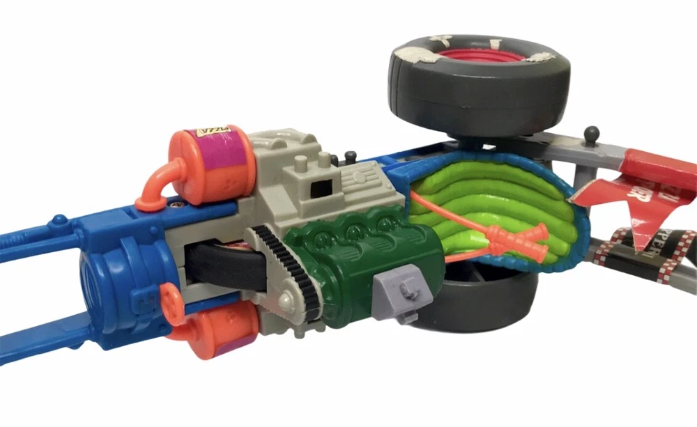 Teenage Mutant Ninja Turtles (TMNT) Sewer Dragster Pizza Powered Vehicle 1990 Playmates Condition: Loose from Package. For the loose figure grade ranging from C-10-C-1. Figure grade (C-5) - Good. Ripcord is missing.