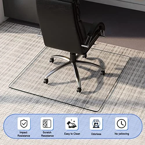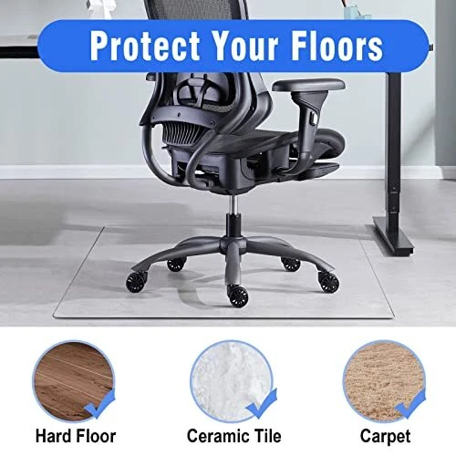 This glass chair mat is a game-changer! It glides effortlessly, looks sleek, and protects both carpets and hard floors from damage. Super easy to clean—just wipe and go. The tempered glass feels sturdy, and rolling my chair is now silent and smooth. Perfect for home or office, and the transparent design blends in beautifully. Fast shipping and great seller—highly recommend!