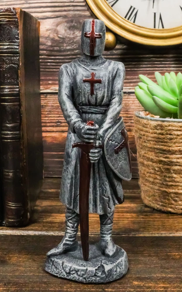 • This Crusader Knight Swordsman Statue measures 6.5" tall, 2.5" wide and 2" deep approximately. • This Crusader Knight Swordsman Statue is made of high quality polyresin, individually handpainted and polished. Because each piece is partially hand crafted, color tone may vary from pictures. • Decorate your home with this medieval crusader knight! He is fully armored, a valiant knight of the cross, equipped with broad sword and a shield. He will make a great gift to any medieval knight, crusader knights and renaissance art lovers. Ebros Holy Roman Empire Crusader Knight With Sword And Shield Statue Suit Of Armor Video will open in a new window Using the mobile app? Copy this link into your browser: