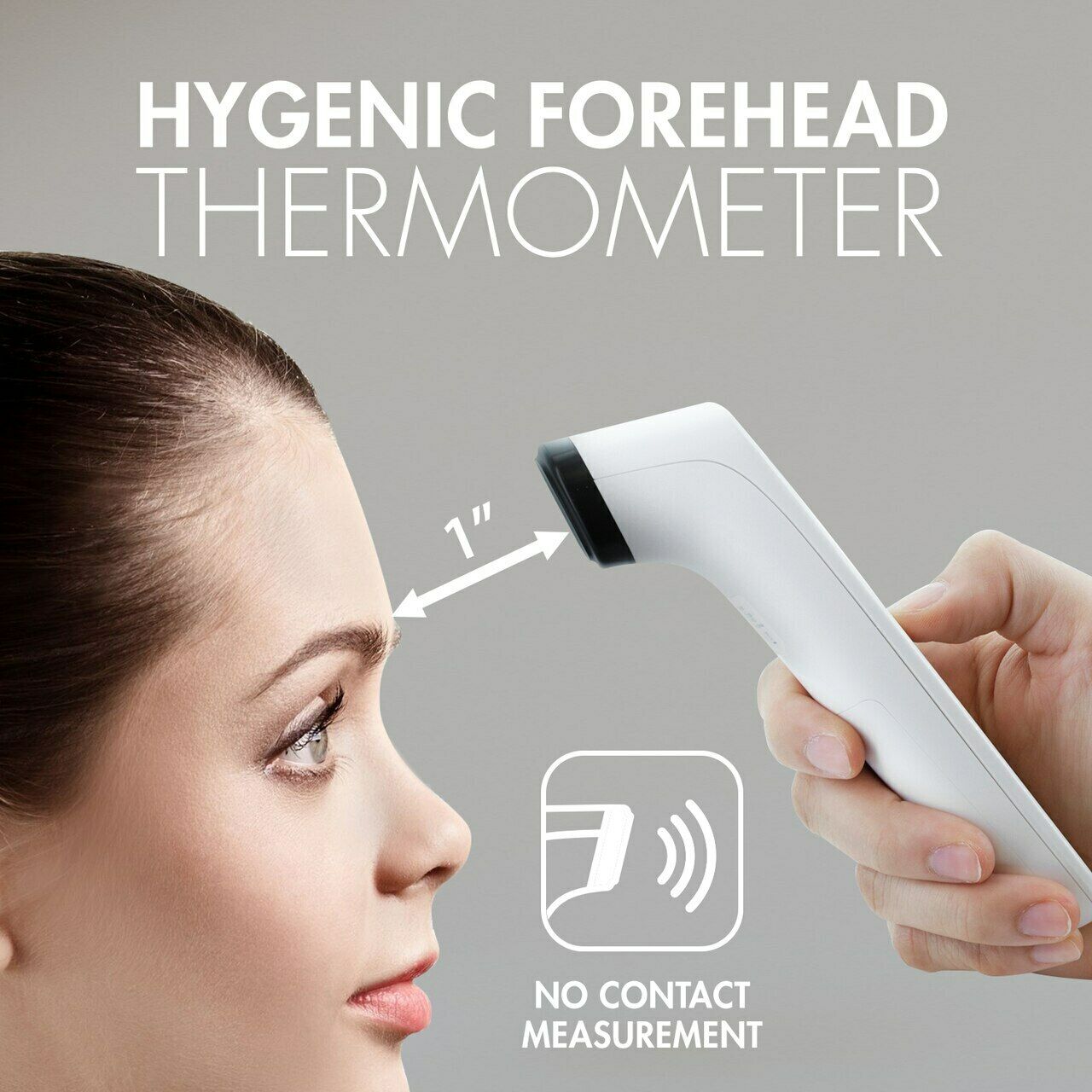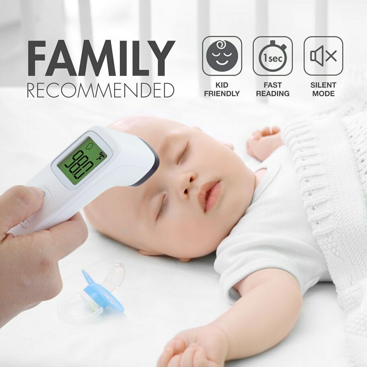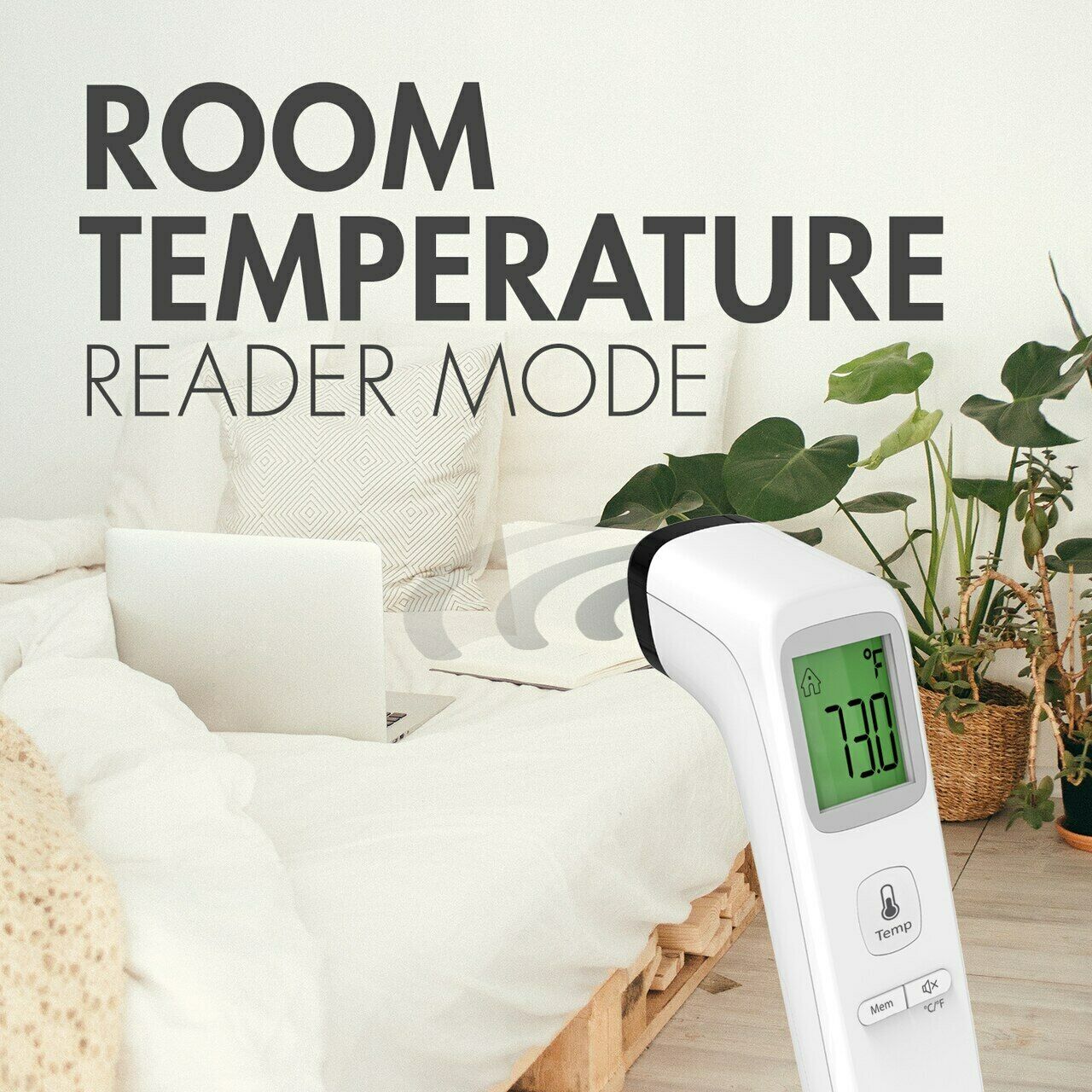precision. 1-SECOND : collects 100 points of data to instantly return an accurate result within one second. COLOR CODED RESULTS : green for normal range, yellow for elevated, and red for fever. ROOM TEMPERATURE MODE : multi-purpose, seperate mode to additionally measure ambient room temperatures 1-Year Warranty (US Seller). Easy-to-Contact. FDA cleared 510(K) Thermometer What's included in this listing? 1 x 1 x Infrared Forehead Thermometer 2x AAA Battery 1x Storage Pouch 1x User manual Product Description Features And Benefits: Tenergy’s no-touch infrared thermometer, provides everything you need to have a hygienic way to instantly measure temperature for entire family. Packaging includes everything you need to use product and includes 2 AAA batteries. Accurate and reliable no touch digital thermometer uses 116 thermocouple elements to provide fast 1 second high precision measurement with ± 0.2°C / ± 0.4°F margin of error. Easily switch between Fahrenheit to Celsius or vice versa. Easy to use forehead thermometer with backlit LCD screen provides quick green, yellow, red, color coded assessment for quickly assessing temperature. Advanced built-in features include room temperature mode to record ambient temperature, silent mode for late night use and no disturbance, 20 seconds auto shut-off, and access to the last 35 recorded measurements. FDA Cleared. Tested and certified by CE and RoHS for safety and quality. Includes Tenergy 1 year warranty, and life time support from knowledgeable and local support team located in California. Contents Included: 1x Infrared Forehead Thermometer 2x AAA Battery 1x Storage Pouch 1x User manual