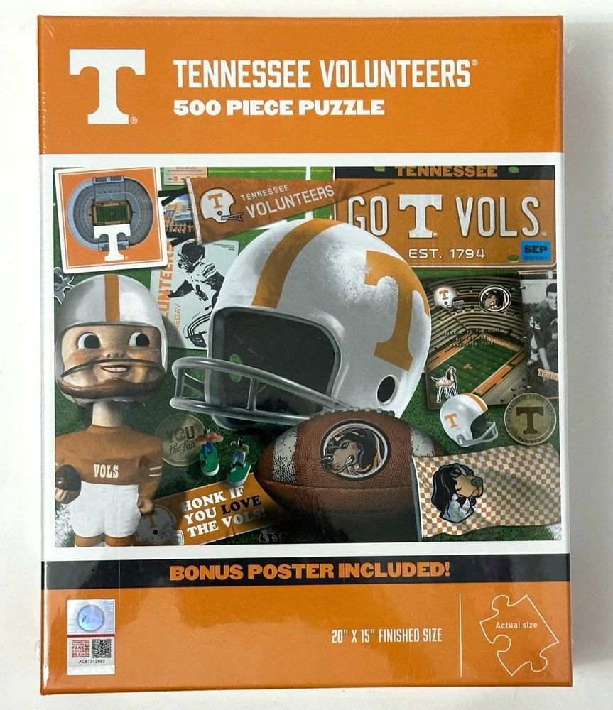 Tennessee Vols Volunteers Football NCAA Jigsaw 500 piece puzzle with poster included. Officially Licensed Collegiate Products. NEW