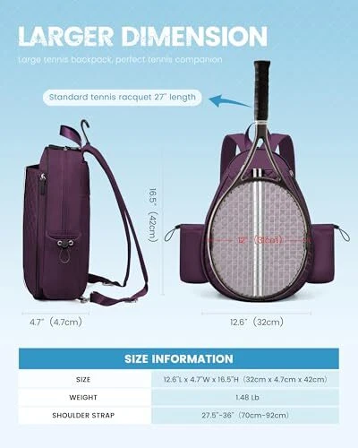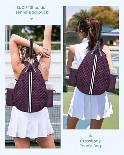 Return Policy Fast Delivery Trusted seller Tennis Bag, Quilted Tennis Sling Crossbody Backpack, Water Resistant Tennis Racket Bags for Women Men, Suitable for Pickleball Tennis Badminton Product Description 【Note Racket Size】Tennis racket cover compartment dimensions: length 14'' , width 12'' , which fits the standard tennis racket size of 27'' in length. To ensure that the womens tennis bag fits your tennis racket, carefully measure the size of your tennis racket before order. 【Wet Compartment & Two Side Pockets】The tennis pickleball racket cover bag features a separate wet compartment to keep items clean and organized—ideal for storing wet clothes and towels. Two side pockets design for cups and tennis balls, allowing for convenient access. 【Convertible Shoulder Strap】Easily switch between double or single shoulder carry with this strap. This tennis backpack for women men offers comfort for both left and right sides, providing versatile and personalized carrying options. 【High Quality Material】 tennis bag for women is made from rip-resistant, water-resistant polyester, ensures durability and protects your gear, offering long-term use and reliable safeguard during matches and practice sessions. 【Hidden Fence Hook】The tennis backpack of hidden fence hook lets you hang the bag on fences, offering easy gear access and ground protection. Perfect for keeping the bag clean during matches and practice. 【Fashion & Multifunction】This quilted tennis sling crossbody backpack has stylish quilted design and complements various sports outfits. It blends fashion and function, ideal for tennis, pickleball, and badminton players both on and off the court. Shipping Returns Payment Shipping Shipping is FREE to all addresses other than APO/PO boxes in the lower 48 states. All our stock ships from US-based warehouses. Shipped via USPS or UPS (depending on location and package weight) Unless stated otherwise, all orders will ship within 24-72 hours of your payment being processed. Check our feedback to see the great reviews of FAST shipping we offer. Returns Seller does not accept returns Payment We currently accept payment via eBay managed payments only. Once payment is cleared, we will dispatch your shipment within 1-3 business days. Please refer to the "Shipping" tab for more information regarding shipping speed to your destination.