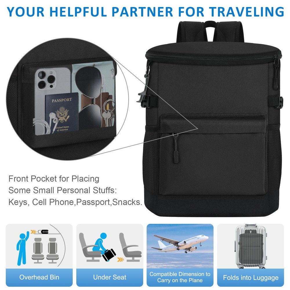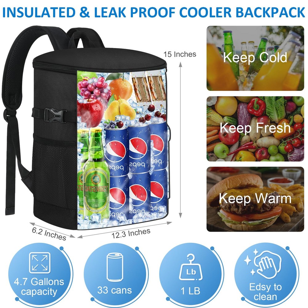 Tenot Cooler Backpack 33 Cans Coolers Insulated 18L-33 Cans, Black Product Details LEAKPROOF COOLER BACKPACK: Tenot lightweight backpack cooler is well insulated enough to keep food cold/hot for up to 16h-24h. There are two dimensions cooler backpacks (18L & 21L) for you selecting.It holds up to 33/40 cans and is lined with a leak-proof liner made of premium quality material that is easy to clean. With our Tenot insulated backpack cooler, your drinks will always stay refreshingly cold EXCELLENT KEEP COOL/WARM: Tenot's insulated cooler backpack are made with premium quality hot seamless pressing PEVA Lining and thickened foam to ensure their keep cool/warm function. This cooler bag are the answer to all your needs for keeping your food warm or cold, whether you're going on a picnic, taking your lunch to work, meeting friends or camping, our soft cooler bag is the answer to your worries, keeping your food fresh and your drinks cold ESSENTIAL OUTDOOR COMPANION: TSA approved dimension cooler backpack for men women. It's an thoughtful solution for people who often by plane or attend outdoor actitives. If you don't need it, just fold it up without taking up any space. Portable cooler bag suitable for varieties of types of outdoor actitives, so you can easily carry it for daily outdoor activities, such as Camping, Hiking, Work, Party, Watching Football/Golf games and so on WIDE APPLICABILITY: The stylish design of this insulated cooler bag is a practical choice for various occasions, These solid color and floral pattern backpack coolers for men women. As you can see, Tenot water cooler backpack in solid colours are suitable for men and soft sided cooler bag with floral prints are suitable for women and young people. The cow and leopard prints in particular may be enjoyed by your children, making it a practical gift for both men and women AMAZING CAPACITY: Tenot cooler backpack has a compact and stylish design but with a large capacity, the main pocket holds 33 cans (18L) of beverages, making it easy to organise all your drinks and snacks; the front pocket holds small items such as paper towels, keys and a mobile phone, and the two mesh pockets on the side hold beer and wine; This waterproof backpack cooler has excellent water resistance and can be a great companion for carrying your lunch, camping or other outdoor activities