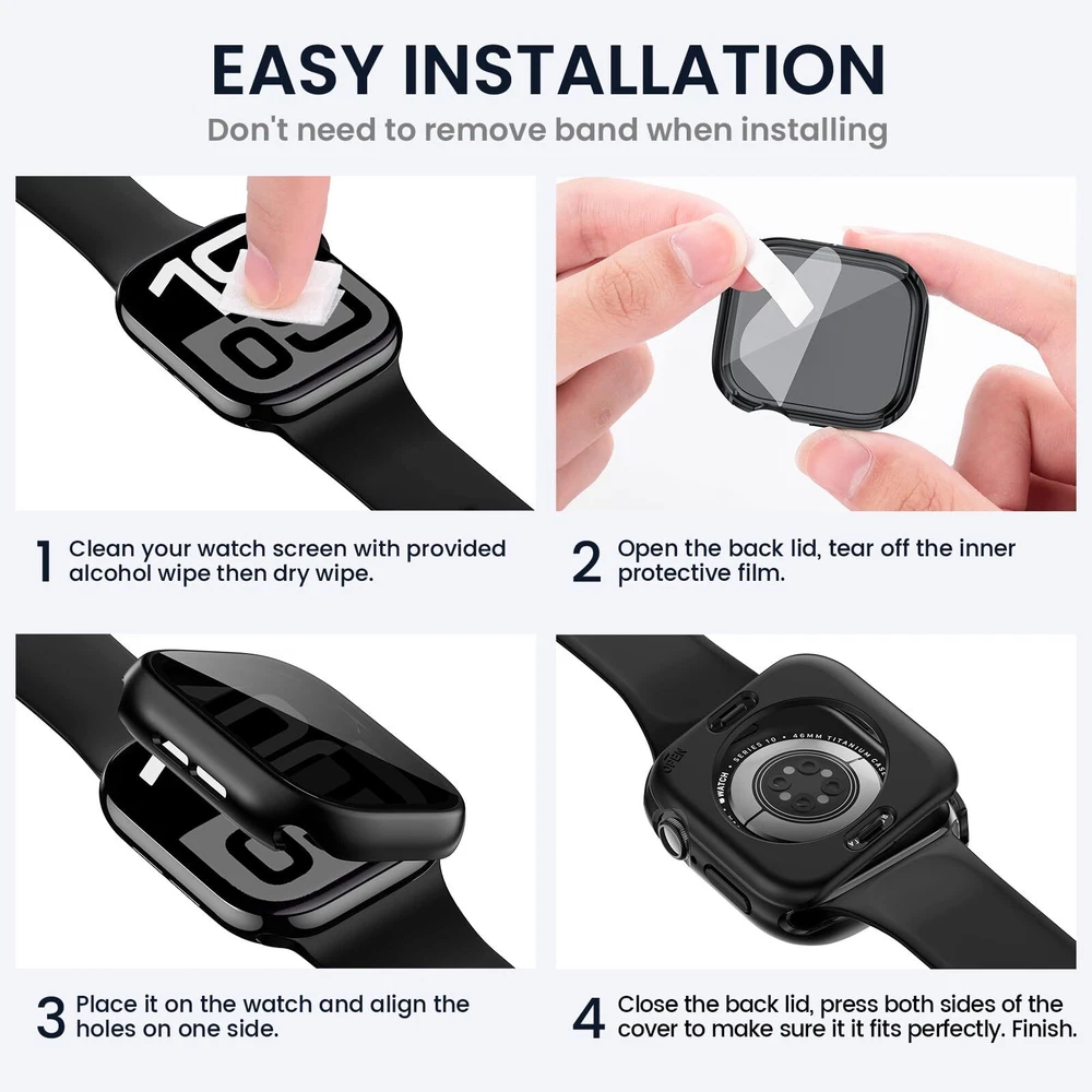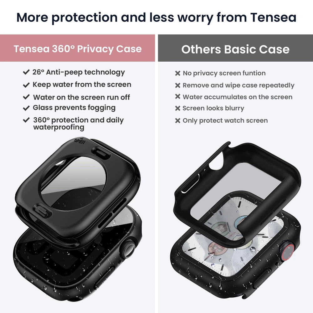 Tensea (2-in-1 for Apple Watch Screen Protector Case Series 10 SE 9 8 7 6 5 4, W Features: Please choose correct SIZE variation befor order: The Tensea privacy screen protector with back cover is available in the following Apple watch sizes and models: 46mm Apple watch Series 10, 42mm Series 10, 44mm 6/5/4/SE(2024)/SE 3rd(2023)/SE 2nd(2022)/SE(2020) , 40mm 6/5/4/SE(2024)/SE 3rd(2023)/SE 2nd(2022)/SE(2020) . Tensea customized Apple watch case in different sizes(mm) to fit various Apple watch sizes(mm). Please select the right size for your Apple Watch Anti-peeping Design: The upgraded privacy case can effectively protect your personal, private and sensitive information from prying eyes in public.The screen is only visible to persons directly in front of screen. Made of hard PC and 9H tempered glass with smooth touching, bring you a comfortable and secure wearing Daily Waterproof: The apple watch screen protector built-in seal ring keeps water away from screen. Water and fog will not enter the screen and affect the touch screen, which means you no longer need to remove the case and wipe the water repeatedly after showering, washing hands, exercising, rain, etc [NOTE: Not suitable for deep waterproofing, such as diving and swimming, etc] 360° Protection: This compatible iWatch face cover which can all around protect the front and back of your watch from dust, dirt, scratches and damages. The HD clear tempered glass screen protector keeps the original touch experience. The sweatproof watch case is easy to install without removing the band Easy Installation: There are installation instructions on this product page and product package.【Easy Removal】- A removal tool is included to remove the case without damaging the watch.【What You Get】1 x Apple Watch front case, 1 x back cover, 1 x removal tool, 1 x cleaning tool. ( Smart watch, band and charger are not included ) If there are any questions with it, please get in touch with us without hesitation Features: Please choose correct SIZE variation befor order: The Tensea privacy screen protector with back cover is available in the following Apple watch sizes and models: 46mm Apple watch Series 10, 42mm Series 10, 44mm 6/5/4/SE(2024)/SE 3rd(2023)/SE 2nd(2022)/SE(2020) , 40mm 6/5/4/SE(2024)/SE 3rd(2023)/SE 2nd(2022)/SE(2020) . Tensea customized Apple watch case in different sizes(mm) to fit various Apple watch sizes(mm). Please select the right size for your Apple Watch Anti-peeping Design: The upgraded privacy case can effectively protect your personal, private and sensitive information from prying eyes in public.The screen is only visible to persons directly in front of screen. Made of hard PC and 9H tempered glass with smooth touching, bring you a comfortable and secure wearing Daily Waterproof: The apple watch screen protector built-in seal ring keeps water away from screen. Water and fog will not enter the screen and affect the touch screen, which means you no longer need to remove the case and wipe the water repeatedly after showering, washing hands, exercising, rain, etc [NOTE: Not suitable for deep waterproofing, such as diving and swimming, etc] 360° Protection: This compatible iWatch face cover which can all around protect the front and back of your watch from dust, dirt, scratches and damages. The HD clear tempered glass screen protector keeps the original touch experience. The sweatproof watch case is easy to install without removing the band Easy Installation: There are installation instructions on this product page and product package.【Easy Removal】- A removal tool is included to remove the case without damaging the watch.【What You Get】1 x Apple Watch front case, 1 x back cover, 1 x removal tool, 1 x cleaning tool. ( Smart watch, band and charger are not included ) If there are any questions with it, please get in touch with us without hesitation eBay integration by