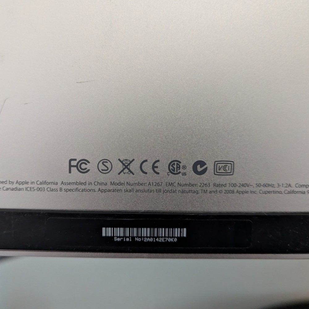 Tested & Working Apple Cinema Display 24 inch screen with a 1920x1200 resolution Model: A1267 Machined aluminum shell Includes aftermarket USB-C adapter Ships carefully packaged. About the Display Supports 1920x1200, 1280x800, & 1024x600 resolutions 330 cd/m2 brightness 1000:1 contrast ratio built in audio and webcam 3 USB 2.0 ports NO DEAD PIXELS - works like it came straight from the factory MSRP $900 when released About the Adapter USB-C to mini display port adapter 4K @ 60hz Thunderbolt 3 compatible Worked flawlessly with M1 & newer powered Mac Should also work with Intel powered Macs, and most Window & Chromebook machines (I can send you the Amazon link for a full description if you want) Screen is unblemished (no dead pixels, lines, or any other imperfections), shell has some light cosmetic wear. Is as pictured Smoke-free home Questions? Please ask SKU-CL336W