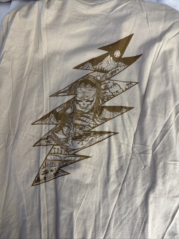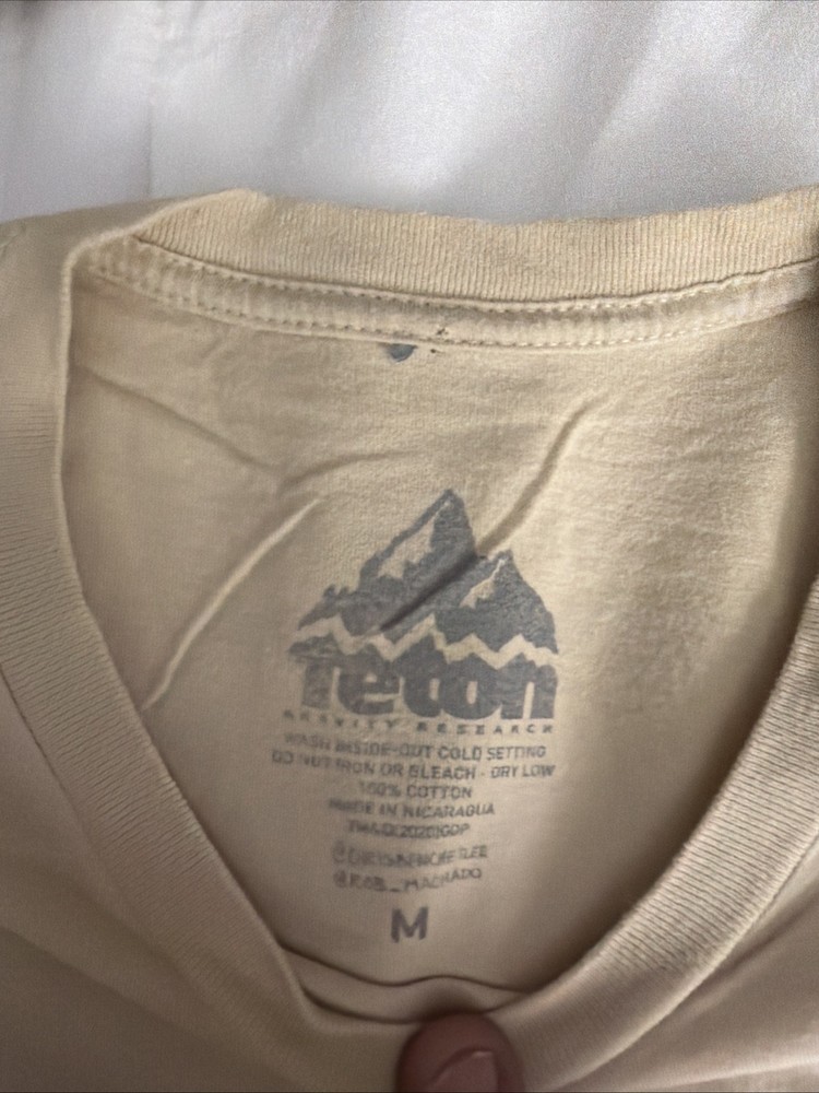 The Teton Gravity Research Skull Lightning Graphic T Shirt is a stylish and comfortable piece of clothing for men who enjoy skiing and snowboarding. The shirt features a unique graphic print with a crew neck and short sleeves, perfect for the summer, fall, and spring seasons. Made of cotton and machine washable, this shirt is easy to care for and durable. The beige color and knit fabric give it a modern and trendy look, while the regular fit ensures a comfortable and flattering silhouette. Show off your love for the outdoors with this eye-catching shirt from Teton.
