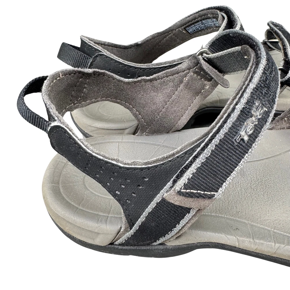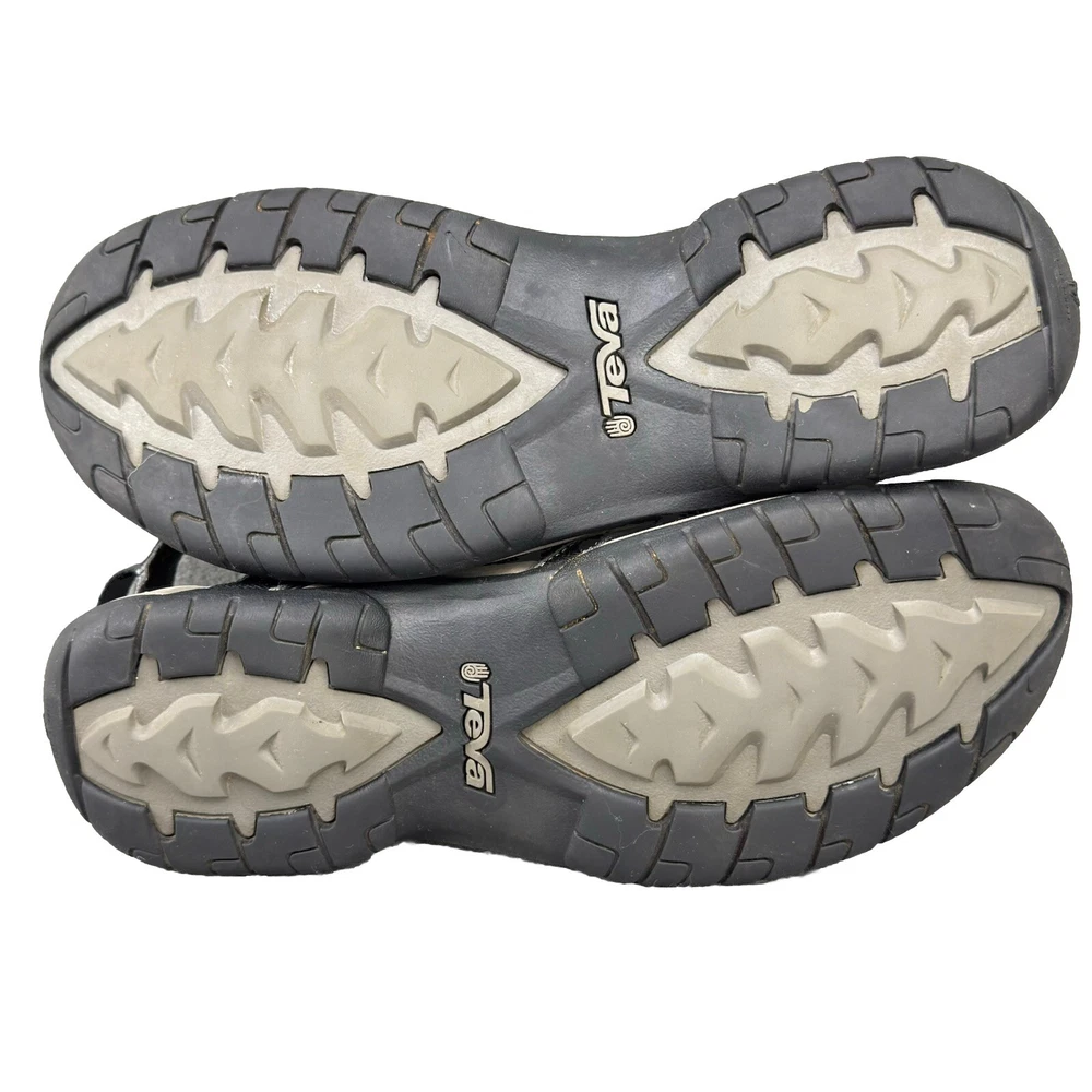 The Teva Verra Sandals in Gray and Black are designed for women in size 11. These sporty sandals feature a strappy style with a striped pattern and hook & loop closure both for ankle and forefoot for a secure fit. Made with leather uppers and an ankle strap, they are suitable for activities like hiking and other casual wear. The flat heel and low heel height make them comfortable for all-day wear, while the Teva Verra model ensures quality and style for outdoor adventures. These sandals offer a mix of practicality and fashion for the active woman. Great pre-owned condition. ⭐Smoke and pet-free ⭐Examine photos carefully as they are part of the description. ⭐If you need more measurements or images, do not hesitate to contact us. ⭐Ships quickly - same or next business day! Returns policy: If you need more measurements or images, do not hesitate to contact us. If you receive your item and it doesn't fit, or is not what you wanted, all we ask is that you return it within 30 days, in the condition we sent it to you in. Please be aware that buyer pays for return shipping. If the item is new with tags, please do not wash or remove the tags. Store tags must be attached for a return. If they are not attached when returned, this will result in less than a full refund. Thank You! 😊