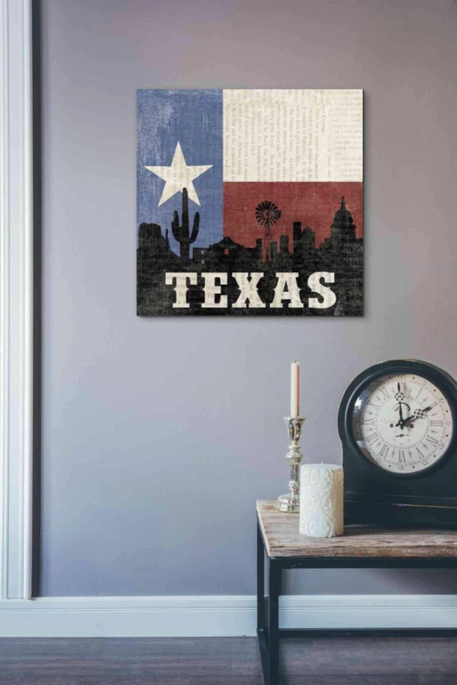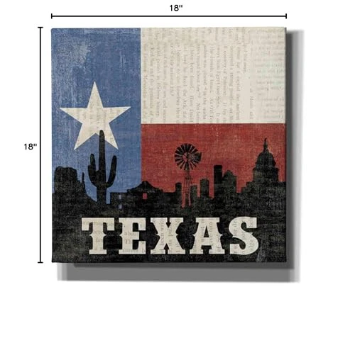 'Texas' by Moira Hershey. Moira Hershey currently resides in Vermont after graduating from Savannah College of Art and Design in 2011 with a BFA in Illustration. She started her career as a designer and art director at Wild Apple. Her design style is quirky, cute, and fun with an emphasis on bold lines and textures. She is inspired by nature, Scandinavian design, texture, and color. Dimensions: 18"W x .75"L x 18"H Giclee artwork, printed on high quality archival canvas, Made in USA Stretched and ready to hang Officially Licensed Digital Print, Artist: Moira Hershey Dimensions: 18"W x .75"L x 18"H