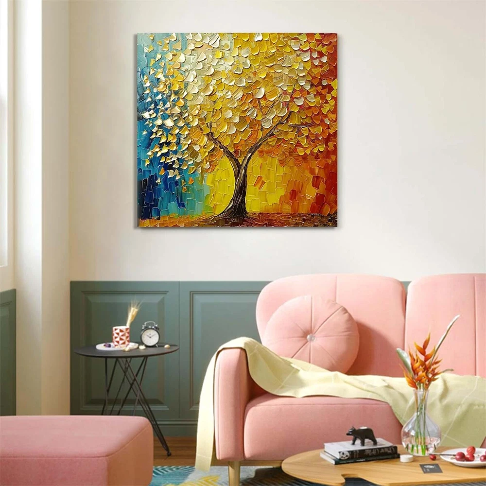 Textured Hand-Painted Oil Paintings on canvas Wall Art Abstract Lucky Tree #008