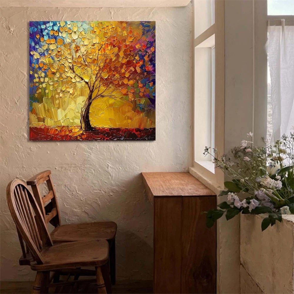 Textured Hand-Painted Oil Paintings on canvas Wall Art Abstract Lucky Tree #009