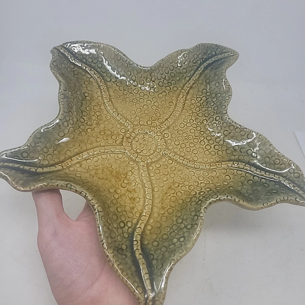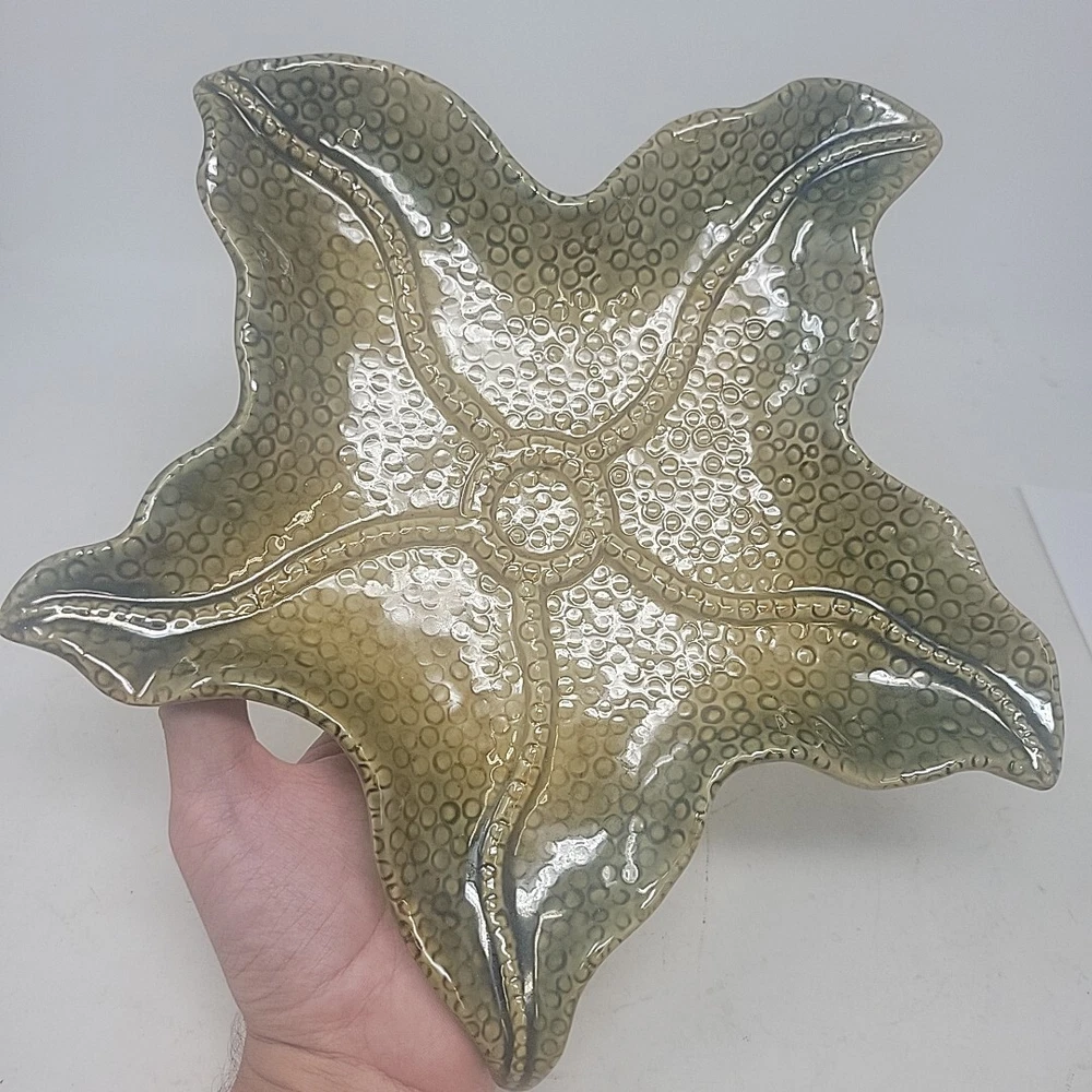 Add a touch of the ocean to your home decor with this beautiful Textured Pottery Ocean Starfish 11" Wall mountable art piece. this piece is perfect for those who love coastal living. Its intricate design and details make it a unique addition to any room, whether it's a beach house or an Airbnb. The starfish is a symbol of resilience and courage, and this piece is sure to bring positive energy to your space. It was crafted with care and attention to detail, making it a one-of-a-kind treasure. Display it on your wall and let it transport you to the calm and serene atmosphere of the beach. Not for food use, but is great wall decor!