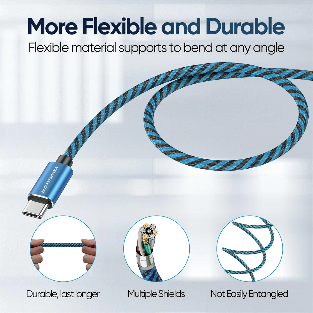 Teyssor USB C to USB C Cable, USB C Charger Cable 10FT 5-Pack 60W, USBC to USBC Fast Charging Cable for Phone 15/15 Pro/15 Pro Max, Type C Charger Cable for Samsung S23/S23+, MacBook, Pad Pro/Air High Speed Charging and Sync: Our USB C Cable supports high-speed charging up to 60W when used with a compatible charger, and data transfer speed up to 480Mbps. Durable and Reliable: Nylon braided charging cable manufactured with high quality TPE material for durability and reliability, able to withstand long-term use and over 10,000+ bends. Superior Design: Type C aluminum cover for safe and reliable, integral Seamless stretch process, high pressure resistance. Aluminum alloy shell by micro-arc oxidation process makes the shell surface harder and more wearable. What You Get: Package includes 5-pack*10 Ft Teyssor USB C to USB C Cables. If you have any other questions, please feel free to contact us, we will resolve your issue within 24 hours. Wide Compatibility: Compatible with all C Port devices including mobile phones, tablets, laptops. Such as Samsung Galaxy S23/S22/S21/Google Pixel 7 Pro/6/Pad Pro/Macbook Pro/Macbook Air etc. High Speed Charging and Sync: Our USB C Cable supports high-speed charging up to 60W when used with a compatible charger, and data transfer speed up to 480Mbps. Durable and Reliable: Nylon braided charging cable manufactured with high quality TPE material for durability and reliability, able to withstand long-term use and over 10,000+ bends. Superior Design: Type C aluminum cover for safe and reliable, integral Seamless stretch process, high pressure resistance. Aluminum alloy shell by micro-arc oxidation process makes the shell surface harder and more wearable. What You Get: Package includes 5-pack*10 Ft Teyssor USB C to USB C Cables. If you have any other questions, please feel free to contact us, we will resolve your issue within 24 hours. Wide Compatibility: Compatible with all C Port devices including mobile phones, tablets, laptops. Such as Samsung Galaxy S23/S22/S21/Google Pixel 7 Pro/6/Pad Pro/Macbook Pro/Macbook Air etc. Shipping from the USA All of our products are shipped from the USA, ensuring quick delivery to your destination. Payment We offer the following payment methods: PayPal, credit card, bank transfer, and eBay's secure payment system. Free Shipping & Free Returns Shipping within the USA is FREE. Additionally, any return is absolutely free for you. Risk-Free Purchase You have the option to return an item within 30 days without any justification. We cover the return shipping costs! Fast Shipping We ship immediately upon receipt of payment. Generally, the package is delivered within 2-3 days in the USA. If it takes longer, we will contact you. Quality and Costs Made in Europe, USA, China No customs fees or additional charges Total satisfaction guarantee Invoice with declared VAT available upon request in .pdf format Feedback Your feedback is very important to us. After you pay for your purchase, you will automatically receive positive feedback from us.