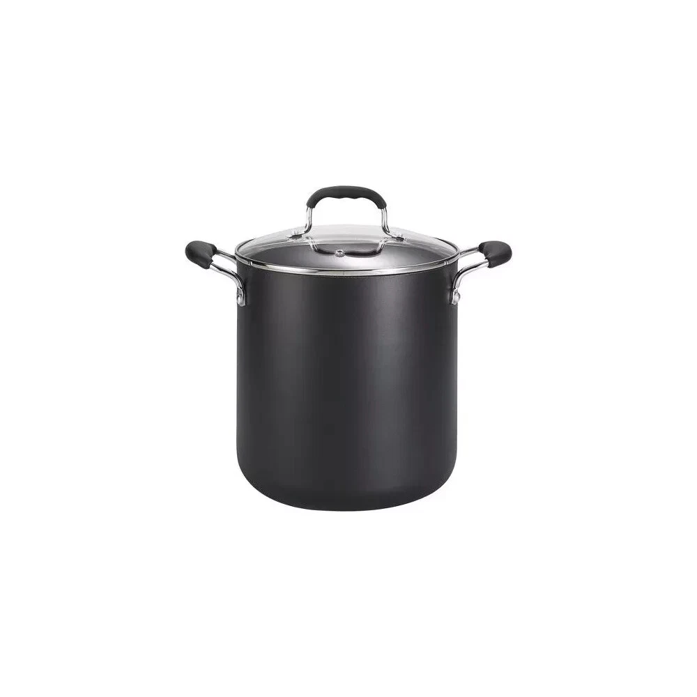 Highlights 12qt stock pot is perfect for stocks, stews and much more Made from durable aluminium for even heating Features riveted handle and soft-grip handle for comfortable cooking Includes a tempered glass lid for easy monitoring of your dishes Description Perfect for the cooking aficionado, this 12-Quart Stock Pot from T-Fal will help you make all of your family favorites, from homemade stocks to soups and so much more. Made from aluminum to provide heat conductivity, this nonstick stock pot comes with a tempered glass lid that lets you easily monitor your food, while covered handles make for a more comfortable cooking experience. Complete with nonstick coating on the interior and exterior for easy cleanup, this dishwasher-safe stock pot makes a great staple in your kitchen. Specifications Number of Pieces: 2 Weight: 4.6 Pounds Finish: Shiny, Non-Stick Features: Vented Lid, Nonstick, Extra-Deep Cooking Body, Non-Slip Handle, Tempered Glass Lid, Soft-Grip Handle, Riveted Handle, Clear Glass Lid, Even-Heating Baking Cooking Surface: Nonstick Handle Material: Aluminum, Plastic Lid Material: Tempered Glass, Glass Capacity (Volume): 12 Quart Includes: Lid Protective Qualities: Heat-Resistant Number of cavities: 1 Pot or pan diameter: 9.5 Inches Cooktop compatibility: Smooth Surface Non Induction, Electric Coil, Gas Material: exterior surface: Aluminum Care & Cleaning: Do Not Use Abrasives, Dishwasher-Safe, Oven-Safe up to 350 Degrees, Oven-Safe, Do Not Microwave, Freezer-Safe