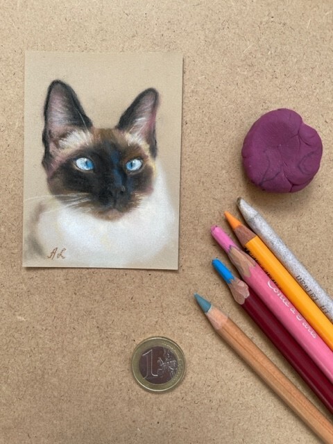 Original Pastell Zeichnung ACEO 2,5 inches x 3,5 inches (6,4 x 8,9cm) Miniatur Painting Herzlich willkommen auf meinem neuen Ebay Account Das Bild wurde von mir gezeichnet mit feinen Kunst Pastellfarben, PanPastellen und Pastellstiften auf hochwertigem Pastellpapier (Pastelmat). Jahr 2025 Um das empfindliche Pastellbild vor äußeren Einflüssen zu schützen empfehle ich es zusätzlich in einem Bilderrahmen aufzuhängen! Die Zeichnung ist ein signiertes handgefertigtes Unikat. Herzlichen Dank für Ihr Interesse! Um mehr über meine Werke zu erfahren, können Sie meine Homepage zu besuchen. Gerne können Sie mich kontaktieren und eine Zeichnung oder Gemälde in Auftrag geben. Bei Bestellung mehrerer Bilder wird der jeweils höchste Versandkosten Betrag nur einmalig für die gesamte Bestell. Versand mit Sendungsverfolgung.