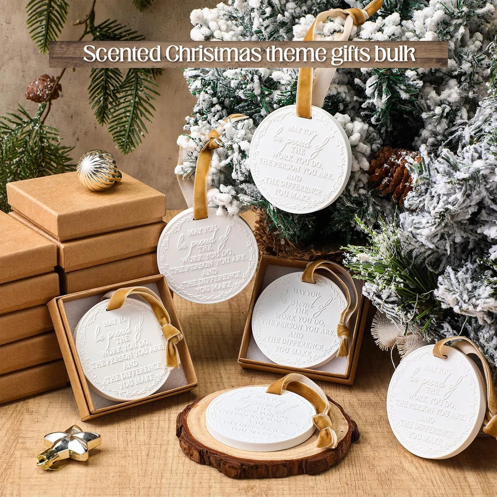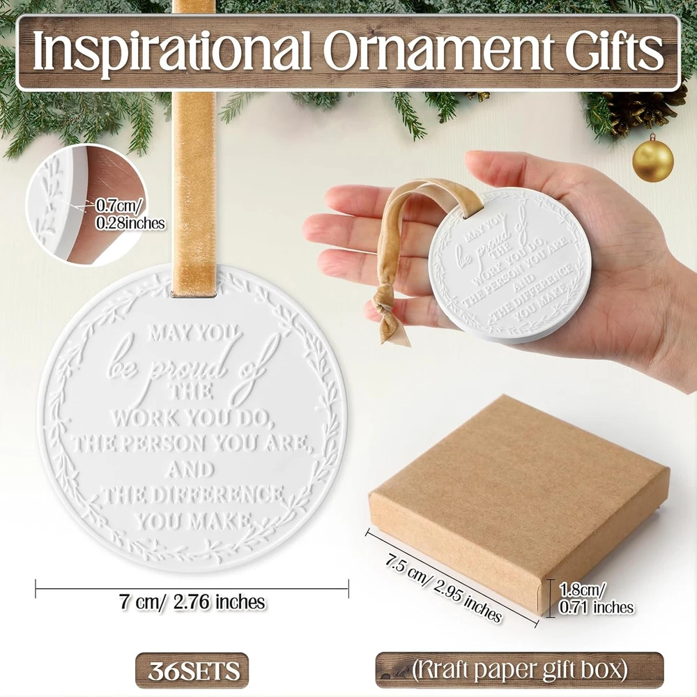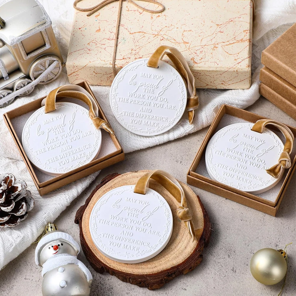Store New Arrivals Add to Favorite View Feedback Contact Thank You Gifts Christmas Hanging Ornaments Appreciation Gifts May You Be Proud of the Work You Do Scented Plaster Hanging Decor for Employee Staff Coworker Nurses(Kraft,36 Pcs) Description Item Package Quantity 36 Package Quantity 36 Color Kraft Material plaster Are Batteries Required No Included Components 36 x Silk ribbon, 36 x Gift box, 36 x Plaster hanging ornaments Thoughtful Appreciation Set: this thank you gifts collection includes 36 plaster hanging ornaments which come with 2.76-inch wide and 6 different scents, such as sea salt, rose, oud, fraser fir, white winter fir, Christmas tree scent, ideal for gifting coworkers, nurses, leaders, or colleagues moving on to endeavors; Each ornament is a lasting memento of appreciation and camaraderie Elegantly Crafted: designed with a stylish round silhouette adorned, these co worker ornaments offer a timeless aesthetic that resists fading. Please note that slight variations in font design may occur, adding uniqueness to each piece Sturdy and Lightweight: crafted from quality plaster, these boss ornaments are both sturdy and light, making them ideal for hanging on Christmas trees, windows, or car mirrors without weighing down branches. Each comes ready to display with a golden hanging string Versatile Occasion Gifts: ideal for an array of celebrations such as Thanksgiving, Christmas, work anniversaries, retirements, farewells, and birthdays. These ornaments for coworkers serve as a thoughtful expression of gratitude and encouragement Multipurpose Keepsake: not just for farewells, these round plaster hanging ornaments are ideal as birthday or goodbye gifts for both men and women. They also add a charming touch to any gift box, making them a delightful decorative accent Features: Personalization-Ready: each Christmas hanging ornament provides a smooth surface that's ideal for personalizing. You can easily customize them with names, dates, or special messages using appropriate markers or paint, making your gift even more memorable and tailored to the recipient. Gift-Ready Presentation: these hanging decor ornaments come packaged in a tasteful box, ready to be gifted. The elegant packaging not only enhances the presentation but also provides protection during storage and transport, ensuring your thoughtful gift arrives in suitable condition. Specifications: Material: plaster Color: white Size: Christmas hanging ornaments: 2.76-inch wide Gift box: 2.95 x 2.95 x 0.71 inch Package includes: 36 x Christmas hanging ornaments 36 x Gift box 36 x Silk ribbon Notes: Manual measurement, please allow slight errors on size. The color may exist a slight difference due to different screen displays. ABOUT US We offer the best prices around on high quality products. Our E-store includes media such as books, movies, music and games while offering electronics, toys, sporting apparel, clothing, tools, general home, garden items and more. SHIPPING We are always working hard to ensure your package arrives as soon as possible. Please understand that some factors like weather, high postal traffic, and the performance of shipping companies are outside of our control. We offer free shipping to the lower 48 states and ship within 2 business days of payment, usually sooner. We do not accept P.O. Boxes. Please provide a physical address. For shipping outside of the continental USA, we only use eBay's Global Shipping Program.The item is shipped to KY and then sent to the rest of the world. International customers are responsible for all duties and taxes. Continue to check out in order to calculate costs for shipping the item to your country. Messages regarding eBay's Global Shipping Program MUST be directed at eBay EXCLUSIVELY. RETURNS We offer a 30-Day Return Policy on items which you are not completely satisfied with. You have the option for a full-refund or an exchange of the item. No returns are available on items shipped outside of the USA. PAYMENT We accept PayPal. CONTACT US This page content is yet to come Please ad us to your favorite seller and visit again later Thank You CUSTOMER SATISFACTION We try our very best to make sure every customer is completely satisfied. If there's a problem, message us! We're happy to help. WE ACCEPT Copyright © 2021 AutoDS. | All Rights Reserved