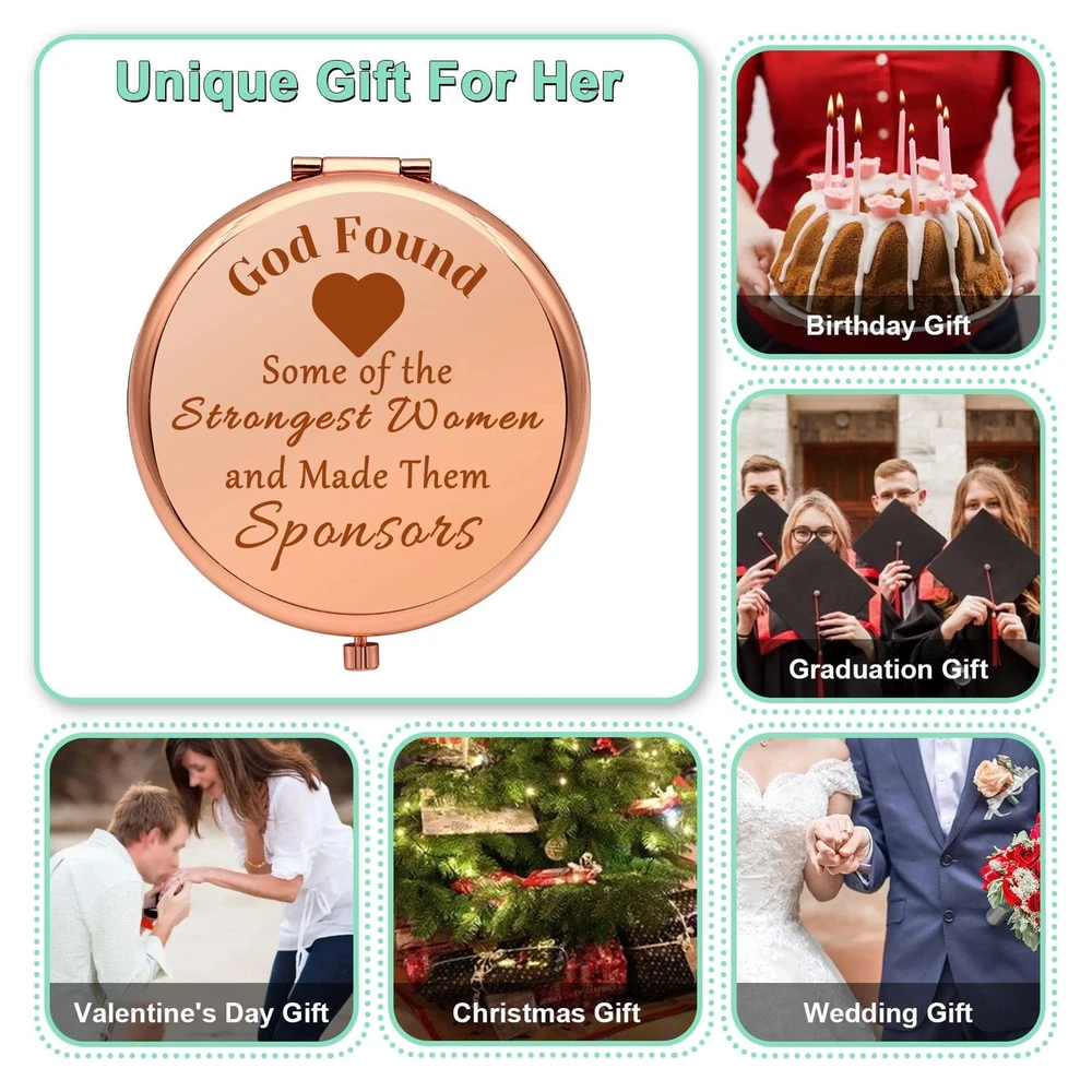 Thank You Gifts for Sponsor Compact Makeup Mirror Addiction Recovery Gifts AA Sponsor Gifts Confirmation Sponsor Gift Sponsor Appreciation Gift Folding Makeup Mirror Birthday Thanksgiving Gifts Product Details Color: For Sponsor Brand: Mwphuy MPN: Does not apply UPC: Does not apply EAN: Does not apply Brand: Mwphuy Shape: Round Product Dimensions: 2.6"L x 2.6"W Frame Material: Stainless Steel Mounting Type: Wall Mount Brand: Mwphuy Shape: Round Product Dimensions: 2.6"L x 2.6"W Frame Material: Stainless Steel Mounting Type: Wall Mount Surface Recommendation: Solid, Flat Surfaces Special Feature: Lightweight Color: For Sponsor Theme: Thanksgiving Number of Pieces: 1 Number of Items: 1 Material: Stainless Steel Frame Type: Framed Item Weight: 0.15 Pounds Assembly Required: No Frame Color: rose gold Manufacturer: Mwphuy-Mir70758 Item Weight: 2.4 ounces Country of Origin: China Date First Available: May 20, 2023 AA Sponsor Gifts for Women:Are you looking for a sponsor gift? This compact makeup mirror is a special thank you gift for the sponsor . Let her know how much they are appreciated by you.Appreciate the sponsor confirmation.The sponsor's gift is perfect to give on many occasions, as a thank you gift for the sponsor, a sponsor birthday present, or a Christmas present. Appreciation Gifts for Women:This sponsored folding makeup mirror can be used as a confirmation sponsor proposal gift or sponsor thank you gift to your sponsor, gift to godparents, catholic mentors. This meaningful makeup mirror will become a beautiful and sentimental gift that best expresses your gratitude and love to an excellent confirmed sponsor. Confirmation Sponsor Thank You Gifts:If you're looking for sponsored holiday gifts, look here! We have it ready for you. This travel makeup mirror with a unique message is specially designed for a sponsor as a thoughtful gift for her Mother's Day, Thanksgiving, Anniversary, Relocation, Retirement, Leave, Farewell. Portable Compact Makeup Mirror:Mirror is shipped with a protective film to protect it. when it arrives,you can tear off the film, the font and pictures will be seen more clearly. 1 side is a standard mirror to help ensure that your lipstick, eyeliner and hair are in perfect condition and the other side is a magnifying mirror, an exceptionally clear image without distortion. Make sure the girl is getting the perfect look, and also allow her to check the tiniest details of your makeup. Confirmation Sponsor Gifts for Women:Folding mini pocket mirror packed in elegant velvet bag, and ready for gift giving. Mini size 2.6 inch/65mm.This compact mirror is light weight and very compact, perfect for multi-purses and travel. It easily fits into your pocket, purse, handbag, cosmetic bag, so you can put on makeup anytime, anywhere.