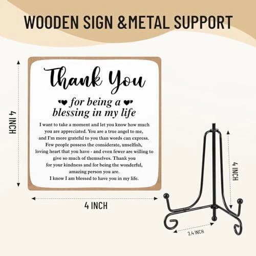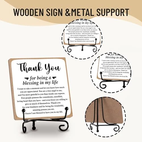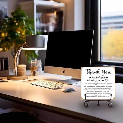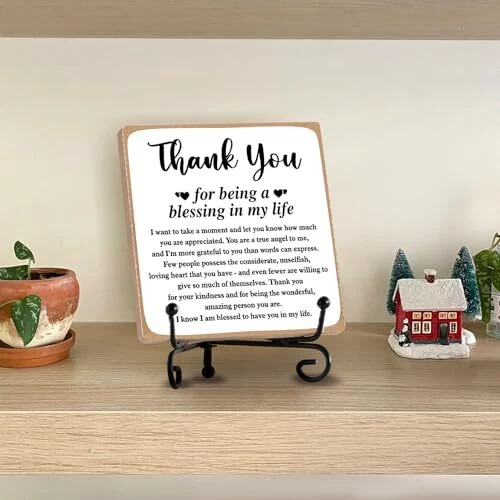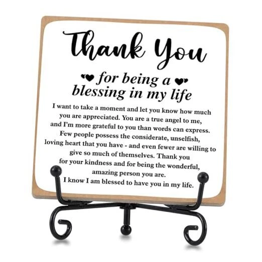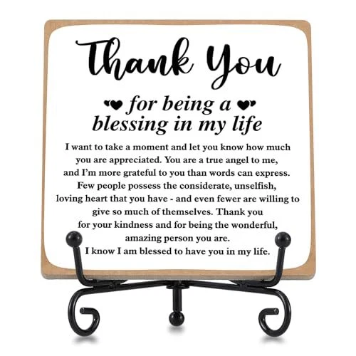 Return Policy Fast Delivery Trusted seller Thank You Gifts for Women Men Friends Mom, Thank You for Being A Blessing in My Life Wooden Plaque with Stand, Thanksgiving Day Gifts for Family Member Desk Decor 4 X 4 Inch Product Description Perfect Gifts for Women: This wooden sign embodies a beautiful and meaningful design, making it ideal for your friends and family. This decoration will stand proudly on any table, bringing a daily dose of positivity to their lives. Premium Quality Wooden Plaques: Crafted from high-quality wood, our tabletop signs are exceptionally sturdy. The clear print does not fade easily, ensuring a long-lasting, serviceable, and unbreakable keepsake. Appropriate size: You will receive a 1pc measuring approximately 10 x 10 x 0.5 cm / 4 x 4 x 0.2 inch home office decor. This desk sign is perfectly sized to fit your workspace. It takes up minimal space when placed next to your computer and is easily handheld. IMPLE TO USE: The shelf can be unfolded to put the plaque on it, making it very easy to assemble. wooden sign is perfect for bathrooms, bookshelves, tables, bedrooms, office desks, and more. Decorative Home/Office Decor: This tabletop sign is versatile for all occasions, such as adorning coffee tables, bedside tables, desks, bookshelves, vanity, and more. Its beautiful design complements any style of home decor and ensures a daily dose of mood. Shipping Returns Payment Shipping Shipping is FREE to all addresses other than APO/PO boxes in the lower 48 states. All our stock ships from US-based warehouses. Shipped via USPS or UPS (depending on location and package weight) Unless stated otherwise, all orders will ship within 24-72 hours of your payment being processed. Check our feedback to see the great reviews of FAST shipping we offer. Returns Seller does not accept returns Payment We currently accept payment via eBay managed payments only. Once payment is cleared, we will dispatch your shipment within 1-3 business days. Please refer to the "Shipping" tab for more information regarding shipping speed to your destination.