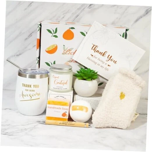 30 Days Return Policy Fast Delivery Trusted seller Thank You Gifts for Women,Employee Appreciation Gifts Baskets,Orange Fruit Themed,Thank You Gifts for Teacher Hostess Secretary Nurse Mom Pastor with Thank You Cards 9Pcs Product Description 【Gratitude Deluxe Gift Box】Occasionally, merely uttering "thanks" is insufficient. When a boss, employee, teacher, neighbor, friend, or any other individual in your life exceeds expectations and goes the extra mile for you, a "thank you" card might not seem adequate to convey your full gratitude. And this exceptional thank you gifts enables you to express your appreciation in a manner that transcends words, and she is certain to adore this thank-you present. 【Meaningful and Personal Thank You Gifts For women】A very high-quality kraft paper gift box contains a collection of 12oz coffee tumbler(featuring BPA-free double-walled vacuum insulation that maintains beverages cold for 9 hours or hot for 3 hours) | 3.5oz Lavender scented candle | Orange soap bar | Furry Sleep Socks | Milk Orange Bath Bombs | A ballpoint pen (5.43 x 0.43 in) |Faux Succulent | thank you card that says "thank you" for your personalized message. (Please see the picture for specific product introduction) 【Employee Appreciation Gifts】Employee appreciation gifts in bulk are an excellent means to express your appreciation for a job well accomplished. Surprise them with a special gift that conveys your gratitude for all the strenuous efforts they have exerted 【Express Gratitude With Ghoughtful Words】Show your appreciation with our "Thank You for Being Awesome" sign ballpoint pen and Card. This pen and the accompanying card are perfect for recognizing the dedication of your team, acknowledging a colleague/teacher/nurse's contribution, or expressing gratitude for a job well done. 【Perfect Thank You Gifts Idea】It can be utilized as employee appreciation gifts, appreciation gifts for female teachers, Teacher's Day gifts, a charming gift idea for appreciation week, the first day of school teacher gift, back-to-school gifts, graduation gifts, Thanksgiving gifts, gifts for female nurses, gifts for female bosses, hostess gifts, farewell gifts for colleagues, gratitude gifts for colleagues,welcome gifts for new employees,farewell gifts for coworkers, Mother's Day gifts, Christmas gifts, and New Year gifts Shipping Returns Payment Shipping Shipping is FREE to all addresses other than APO/PO boxes in the lower 48 states. All our stock ships from US-based warehouses. Shipped via USPS or UPS (depending on location and package weight) Unless stated otherwise, all orders will ship within 24-72 hours of your payment being processed. Check our feedback to see the great reviews of FAST shipping we offer. Returns As our valued customer, we will do our best to make sure the product you receive arrives to you on time and as expected. If you are not satisfied with your purchase, please contact us within 30 days of receiving your order to process a return. Payment We currently accept payment via eBay managed payments only. Once payment is cleared, we will dispatch your shipment within 1-3 business days. Please refer to the "Shipping" tab for more information regarding shipping speed to your destination.