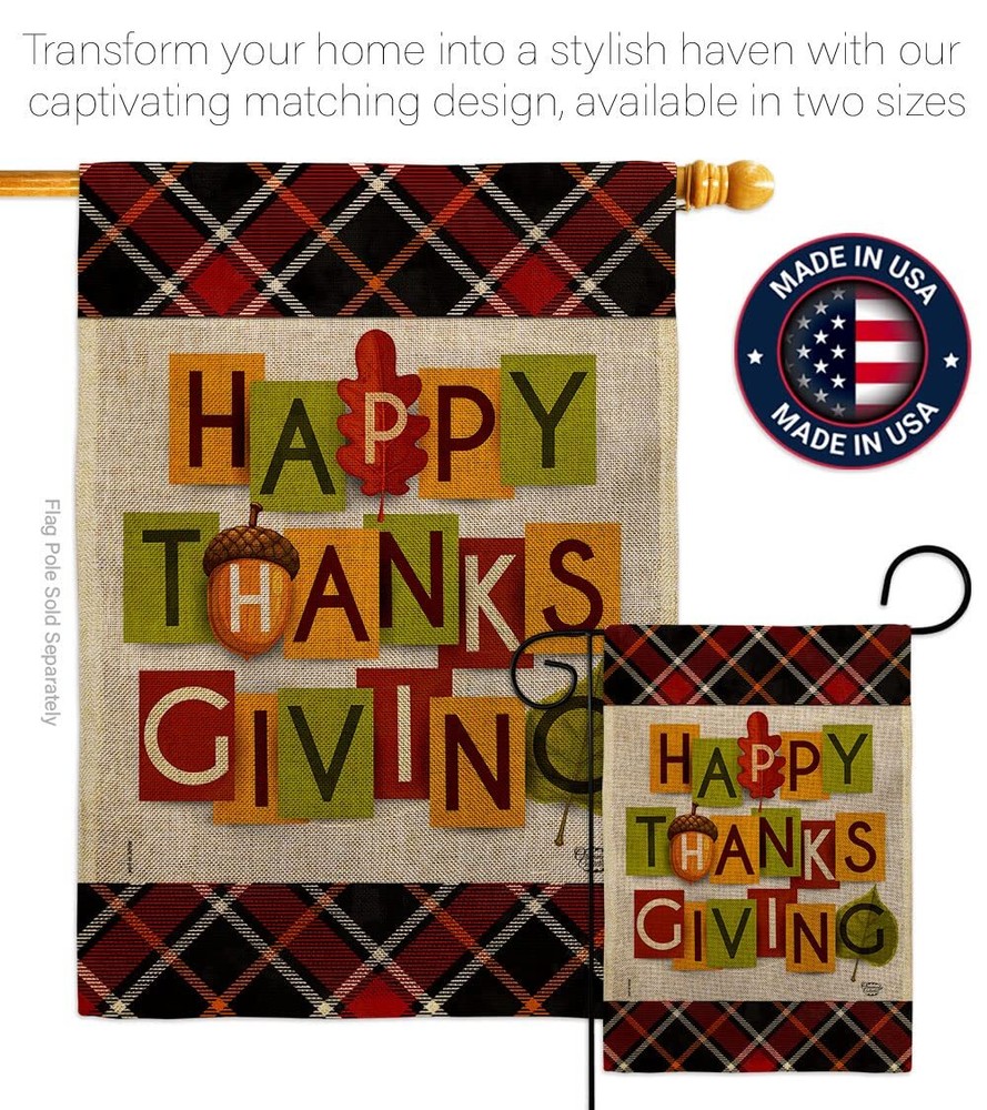 Thanksgiving Beautiful Large House Flags Pack - 2 Sets have variety of House Flags Pack for all occasions. Uniquely design for hanging indoor or outdoor use. We are committed to offering you exceptional values. Our customers enjoy displaying our House Flags Pack for longer periods. Specification: Theme: Thanksgiving Size: House Flags Pack 28" x 40" Print: Double-Sided Readable: Readable Both Sides Material: Weather Resistant Double Burlap Stitching: Double Stitched Display: Vertical Hang Type: Sleeve Artist: © Eva Lee Special Features: Origin: Made In USA Package Include: 2 pc x House Flag 28" x 40" Package Decorative Flags For more than a decade, we’ve been dedicated to manufacturing flags with no comparison in quality and beautiful designs. Our flags are made with our Guard material that is soft to the touch and designs can be read correctly on the flag. A feature that our customers will love. We are committed to using eco-friendly inks that won’t leave a foot print in our environment. MPN: OC-TG-HP-192632-IP-DBAE-D-US21-OC 92632 92632 PROUDLY Made In USA - Package And Product Designed In California PURCHASE WITH CONFIDENCE - From 's US Authorized Resellers MADE OF DURABLE - 100% Thick Double Burlap Fabric construction helps resist the wear and tear from frequent use TEXT READABLE BOTH SIDES - House Flags Pack Double-Sided Print DURABLE FLAG - Double stitching panels on multiple rows and high quality Sleeve to provide lasting strength VIBRANT COLORS - With UV-Resistant Maintains Its Colors All Season Long FEATURES - Sleeve Hanger fits standard Banner/Flagpole, Bracket, Arbors or stand, SOLD Separately