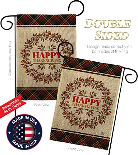 PROUDLY Made In USA - Package And Product Designed In California PURCHASE WITH CONFIDENCE - From 's US Authorized Resellers MADE OF DURABLE - 100% Thick Double Burlap Fabric construction helps resist the wear and tear from frequent use TEXT READABLE BOTH SIDES - Garden Flag Set Double-Sided Print DURABLE FLAG - Double stitching panels on multiple rows and high quality Sleeve to provide lasting strength VIBRANT COLORS - With UV-Resistant Maintains Its Colors All Season Long FEATURES - Free Breaks Down Metal Garden Flag Pole Included!