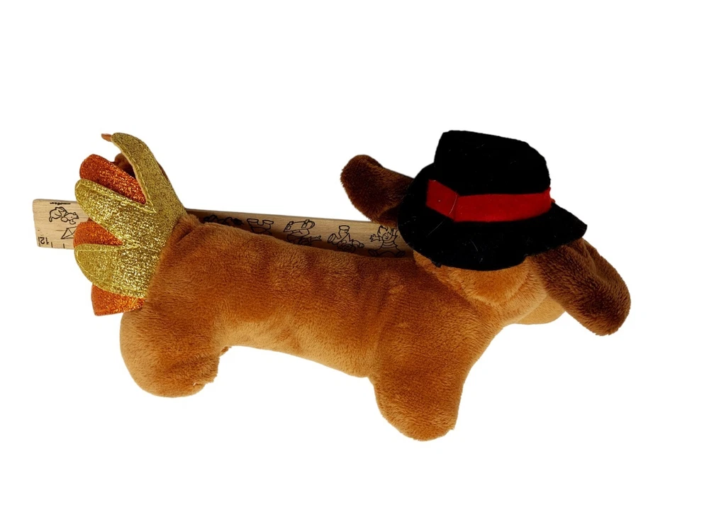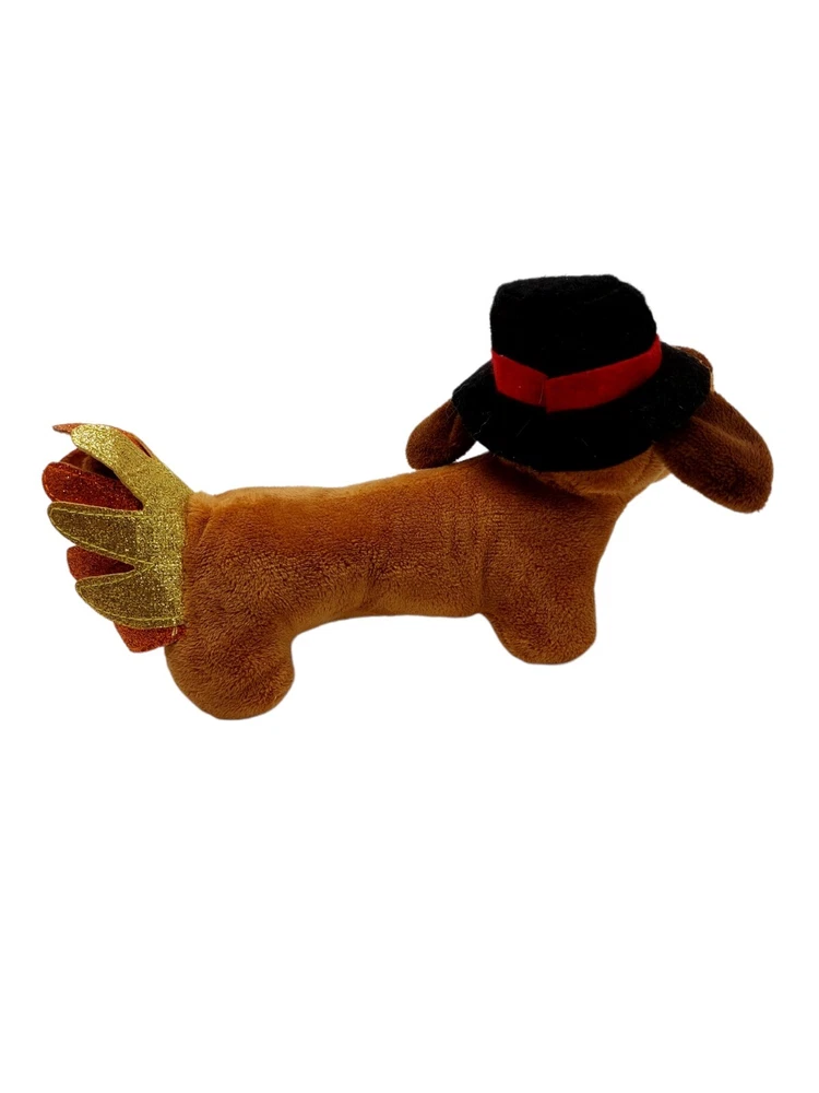 Missing tag. Thanksgiving Dachshund Weiner Puppy Dog Stuffed Animal Plush 11” felt glitter turkey feathers.