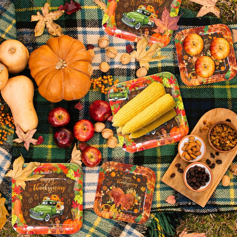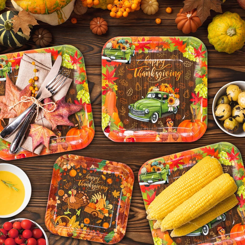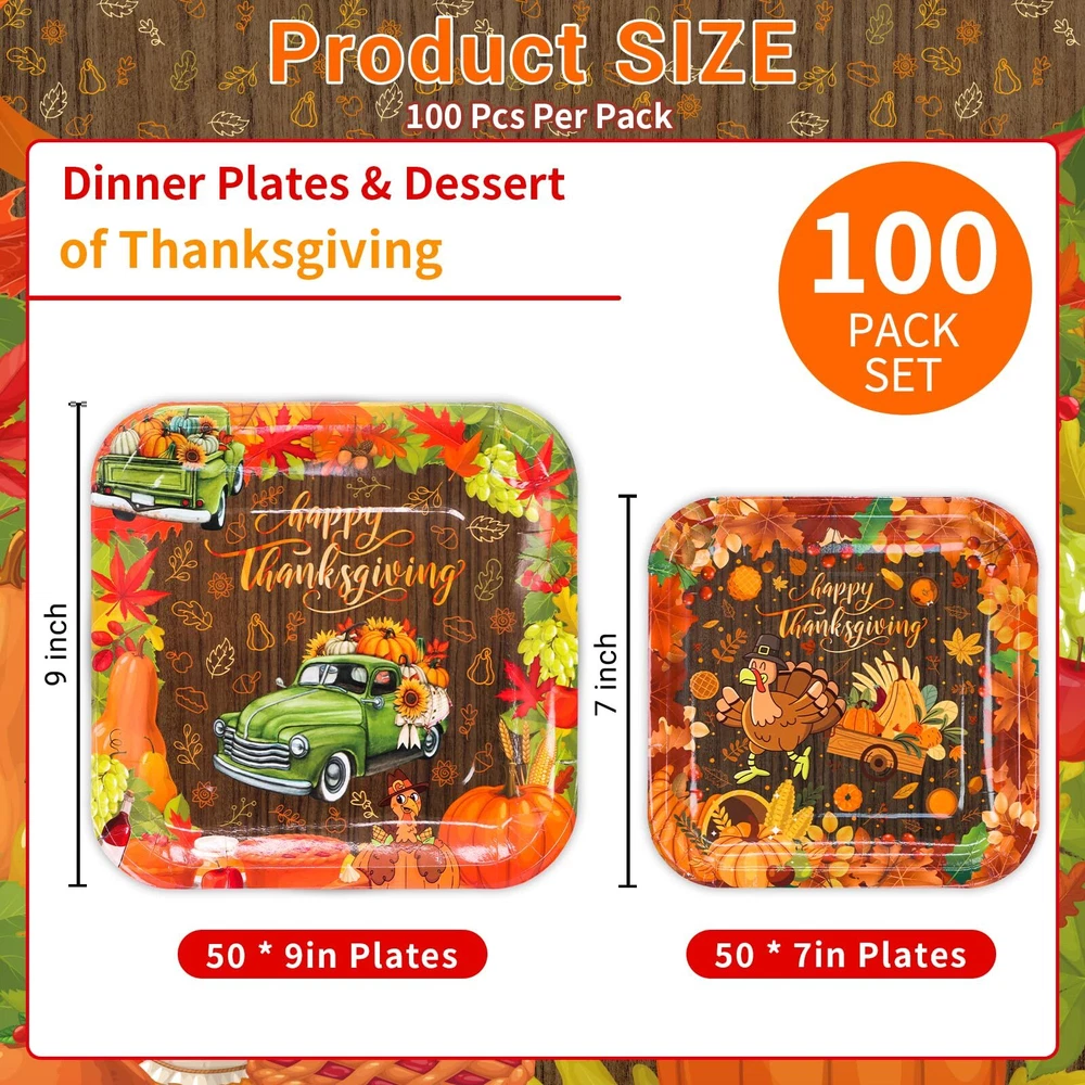 Package and Measurement: The package of Thanksgiving Paper Plates is 100 pieces bulk total, measuring 9 inches Fall dinner plates are 50 pieces and 7 inches Harvest dessert plates are 50 pieces. Our special design of Thanksgiving Paper Plates will impress your guests around your table decoration. Harvest truck DESIGN: The design of Harvest truck plates is brilliant and attractive. The Harvest truck plates come with a Harvest truck, Pumpkins, Turkey, and Harvest Food. It looks more luxurious and valuable for decorating your Thanksgiving Party celebration. Convenient of Fall Party: Our Fall Party Dinner & Dessert Plates are made of a strong paperboard, each Thanksgiving Plates has been coated with cut-resistant strength film. Classic Fall Party Plates: supplies an ideal of Thanksgiving-themed party decorations with classic Harvest truck elements of paper plates, its designs come with Harvest trucks, Pumpkins, Turkey, and Harvest Food. Perfect size of Thanksgiving dinner Plates and Dessert Plates are great for Meals, fruits, Cakes, Desserts, Salads, and more. Say goodbye to washing dishes after you use disposable paper plates on Thanksgiving celebration