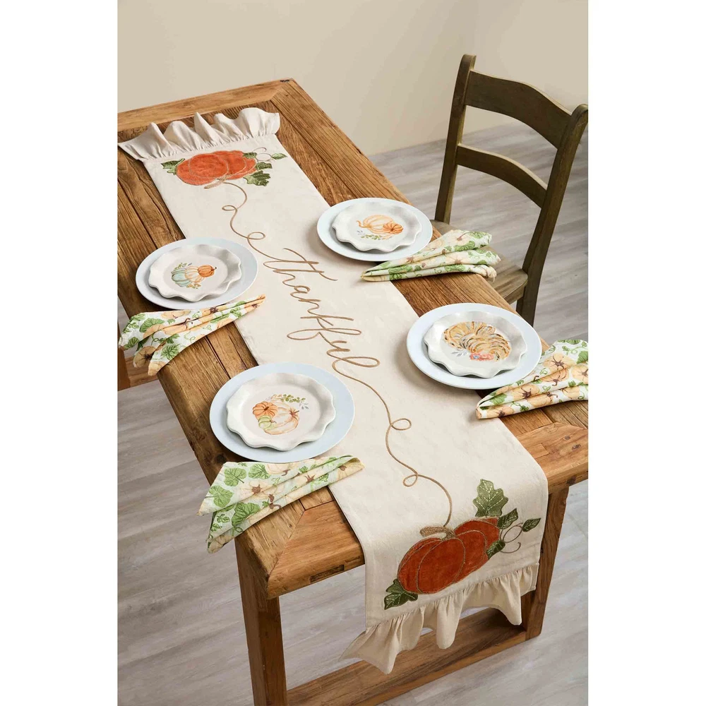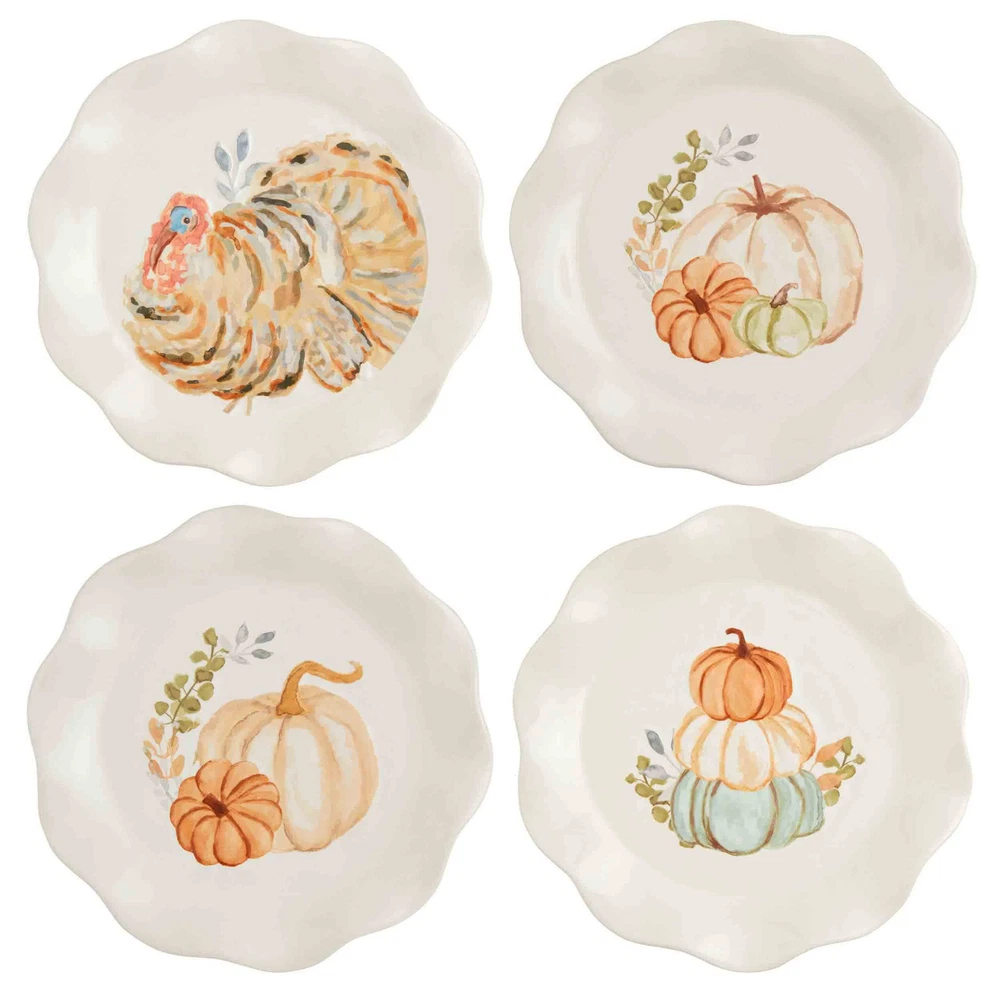 Leave your guests thankful, grateful and stuffed with our Stacked Pumpkins Salad Plate. The ceramic salad plate is made of stoneware. The plate features a ruffle edge. The plate features a stunning pastel Fall image in the center. The plate is dishwasher safe. The plate measures 8" in diameter. This plate is great for Thanksgivings and Friendsgivings. Mix and match with other styles. Leave your guests thankful, grateful and stuffed with our Stacked Pumpkins Salad Plate The ceramic salad plate is made of stoneware. The plate features a ruffle edge. The plate features a stunning pastel Fall image in the center. The plate is dishwasher safe. The plate measures 8" in diameter. This plate is great for Thanksgivings and Friendsgivings. Mix and match with other styles.