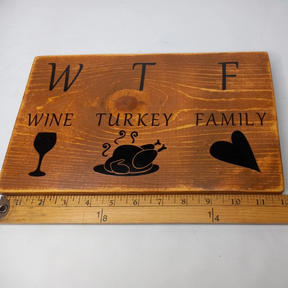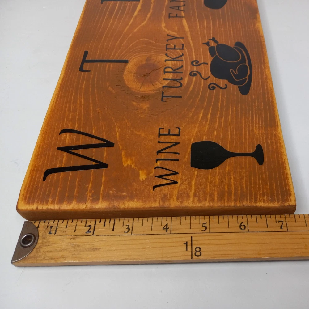 Handmade Wood Holiday Thanksgiving Sign 12x7 Wine Turkey Family Home Decor. Please see listing photos for details and measurements. Ships USPS ground advantage mail. • Feel free to contact me if you have questions on any of my items. • Buy with confidence! I pride myself in complete transparency with item descriptions and photos for your complete satisfaction. • Colors in listing photos may vary slightly due to your screen calibrations and settings. • Please ensure your shipping address is correct prior to payment for a smooth transaction. • All fragile items will always be packaged securely prior to shipping. • Visit LK Auctions to view my current selection of items and if you like what you see please follow my store.