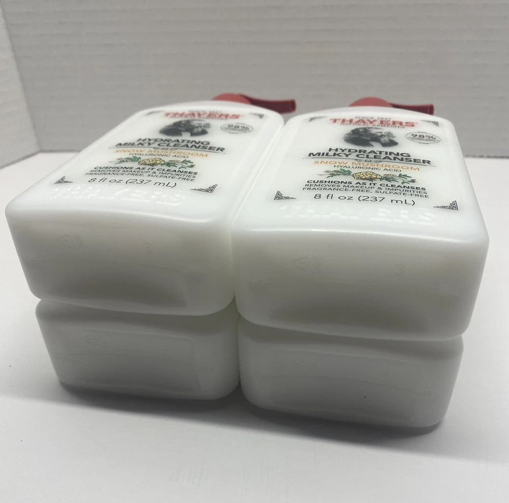 Pack Of 4 - Brand New 4X-THAYERS Snow Mushroom Hydrating Milky Facial Cleanser W/Hyaluronic Acid-8oz.