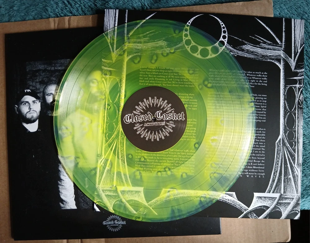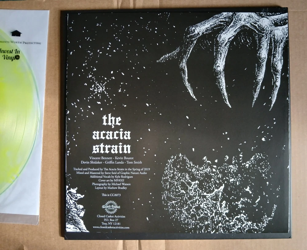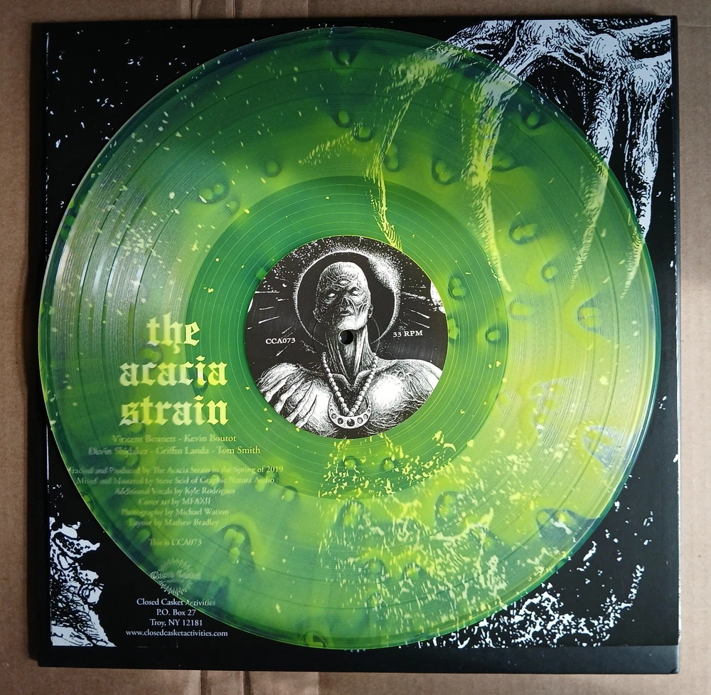The Acacia Strain "IT COMES IN WAVES" "Ghostly Yellow" pressing (yellow cloudburst in clear) colored vinyl 2021 Closed Casket Activities The record has more of an acid green/lime green color. It is in overall excellent condition with no skips, scratches or damage. The vinyl has recently been brush-cleaned and played, and although there was no skipping or damage, some light pops can be heard the first opening seconds of each side during quiet parts before the music gets loud. This isn't noticeable at all after about 20 seconds, and it's just a very light pop every rotation at the very beginning of the record. The record cover is a very thick, hard cardboard gatefold cover, with matte and glossy black embossed artwork. Album cover is in very good shape with no major damage or wear, a very slight corner ding on the front bottom right. Check out all photos closely and make sure the condition quality is up to your standards visually. The record has been stored in a Hudson hifi archival quality inner sleeve for extra protection, which will be included. THANKS!