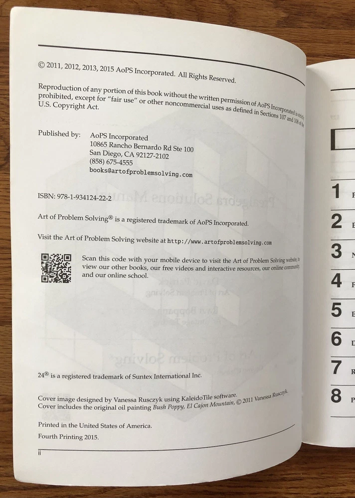 -The Art of Problem Solving Pre Algebra Solutions Manual -This is a used book in overall good condition: -Pages appear clean and unmarked -Cover shows various signs of wear -See pictures for details -If you decide to purchase this book, feel free to leave feedback or a review! We are a small business and any feedback helps -Be sure to check out our other listings for more used homeschool books!