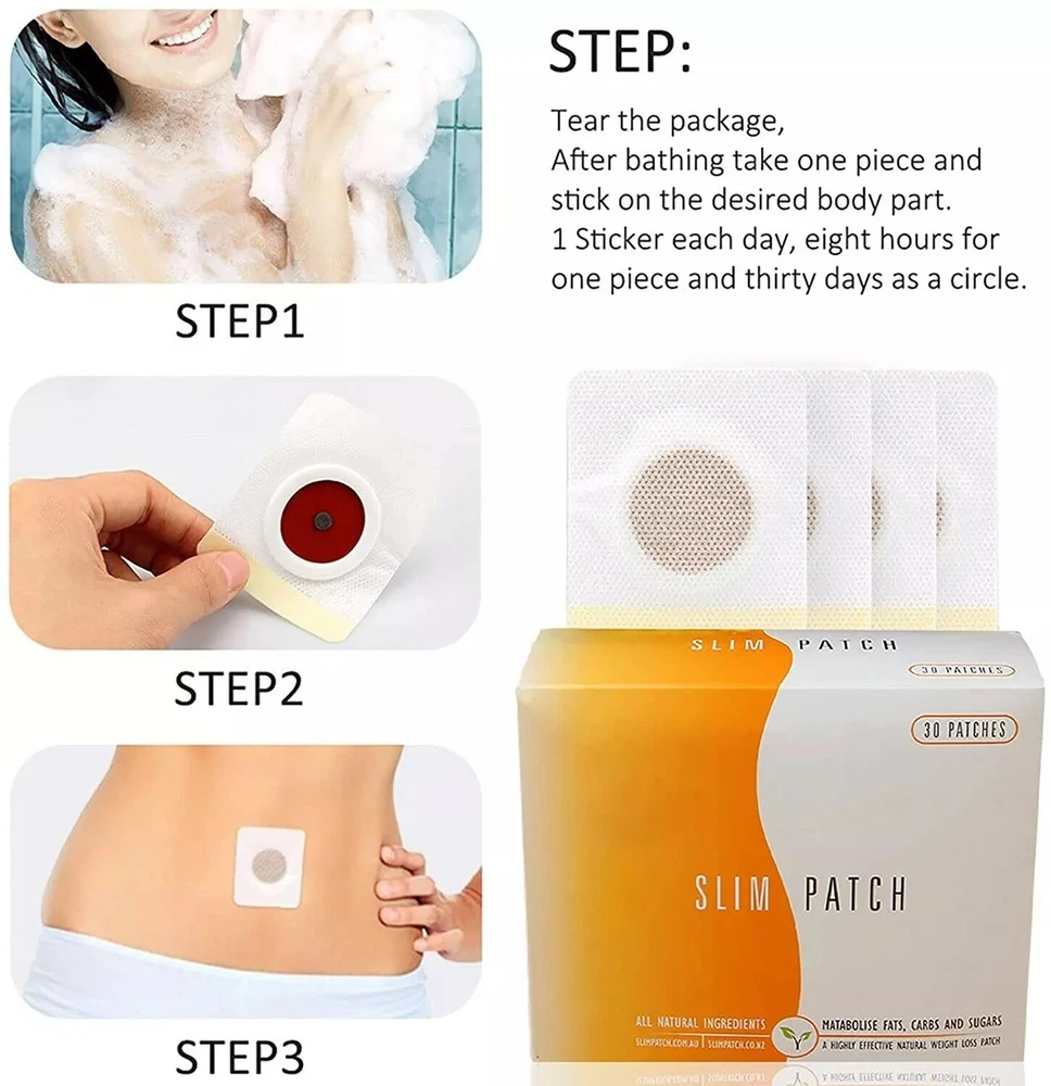 Slim Patch, Slimming Patch, Slimming Patch, Slimming Patches Thin Patches, Belly Button Stick Burning Weight Loss for Body Beauty New (60PCS) Description: The Slim Patch belly button stick is made of good natural ingredients, it works with the body's endocrine system and makes you lose weight by increasing metabolic rate. It could also actively block the absorption of other fats and remove toxins that have accumulated in the body. It is also very comfortable to wear at home or office. Features: Made of good natural ingredients, a very effective natural way to lose belly weight. It works with the body's endocrine system, which includes the glands that control the body's metabolic rate, increasing the metabolic rate to lose weight. Slim Patch also actively blocks the absorption of other fats, increases blood circulation and removes toxins that have accumulated in the body. Our belly button stick can be worn comfortably anytime and anywhere - at home, at work or in other places. Every time you use it, please stick it for about 8 hours to 12 hours.