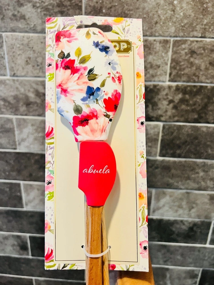 The bake shop by Masterclass silicone spatula Abuela Grandma gift idea Beech wood Smoke free Pet free All my items are cleaned before shipping. Buy 2+ items from my store and I will be happy to provide you with a discount. I accept reasonable offers. Same day or next day shipping. New items posted daily! Thank you for supporting my small business :)