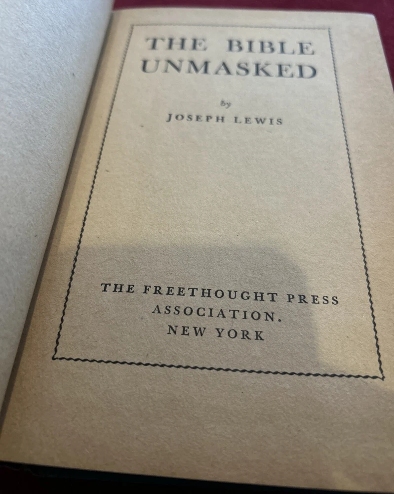 This antique book titled "The Bible Unmasked" by Joseph Lewis is a rare find for collectors and enthusiasts of religion and spirituality. Published in 1952 by The Freethought Press in New York, this hardcover book is a first edition and features special attributes that make it a unique addition to any collection. The book is written in English and has a subject of religion and spirituality. It was printed in the United States and is an excellent addition to any books or magazines collection. This item is perfect for those who appreciate antiquarian and collectible books, and its rarity makes it a valuable find. The condition is near perfect with the exception of inside pages turning a darker brown, which I believe is unavoidable. Green cover is as good as new, spine strong, and corners sharp. Great find for someone’s collection that requires near perfect condition. Also a Hereward Carrington book plate on the inside cover. Lots of cool illustrations and pictures inside. Thanks for looking!