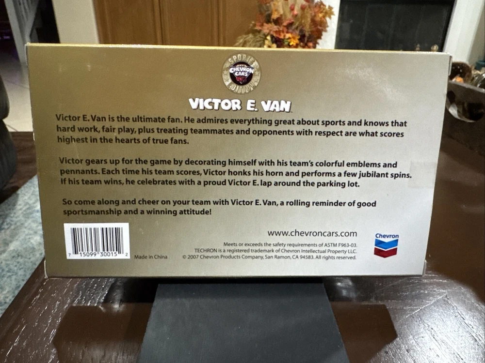 This collectible item from Chevron features the "VICTOR E. VAN" Sports Edition in the Oakland Athletics A's design from 2007. The item is new and has never been used or displayed. It is a promotional item from Chevron, featuring their iconic logo and colors in a fun and collectible design. The item was manufactured in China and is an original piece, not a reproduction. It would make a great addition to any collection of gas and oil advertising or Chevron memorabilia. New in box. Smoke free home. Never been opened.
