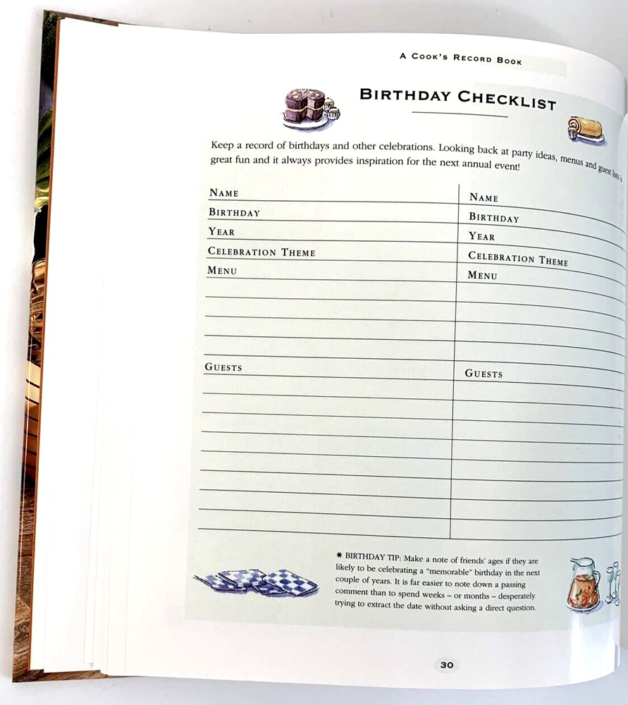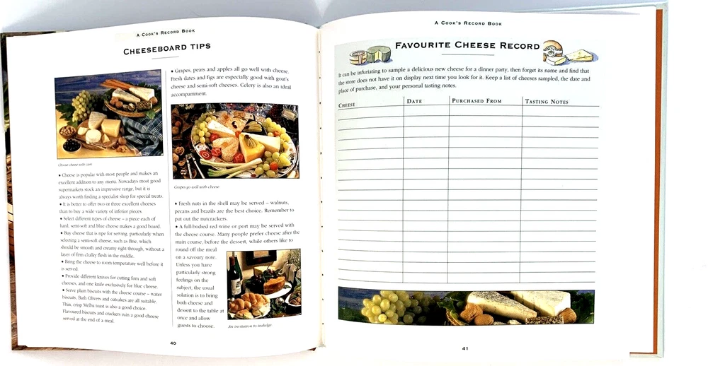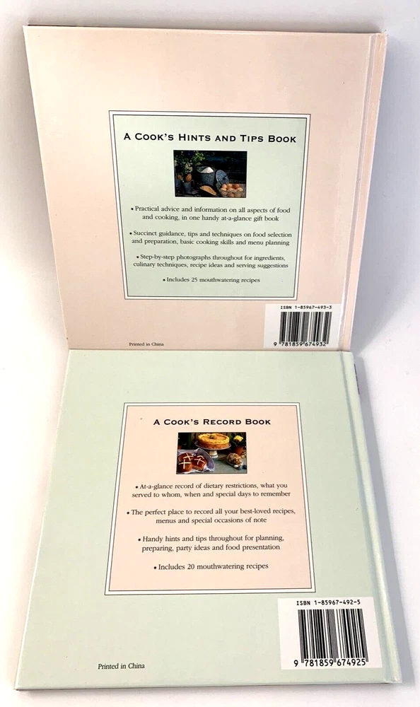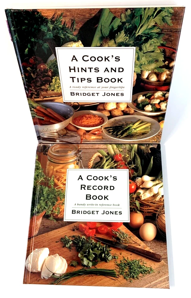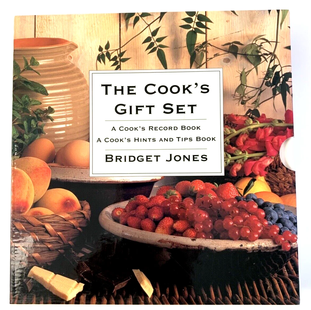The Cook's Gift Set of 2 volumes by Bridget Jones Cook's record book also book of hints and tips Beautifully illustrated with recipes, cooking, roasting, methods, preparation, conversions and menus Would make a wonderful gift or for your own enjoyment. Books measure 8.25 by 8.50 inches Very good pre-owned condition with no markings, notes, or writing