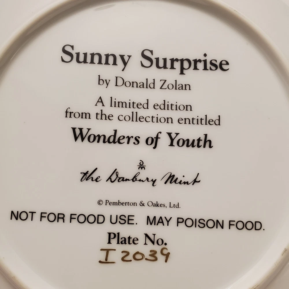 The Danbury Mint SUNNY SURPRISE 8" Plate Donald Zolan Wonders of Youth I-2039 EC. (Little boy looking at butterfly). Excellent condition! โWHILE YOU'RE HERE CHECK OUT MY OTHER UNIQUE ITEMS ALSO โ Keep in mind that the color may not be exact because of lighting. Stored in a pet free smoke free environment! ๐โ๏ธ๐โ๏ธ๐โ๏ธFast Shipping ๐โ๏ธ๐โ๏ธ๐โ๏ธ If you plan to purchase more than one item from my store send me a message through this platform and I will combine shipping when possible to reduce the cost.