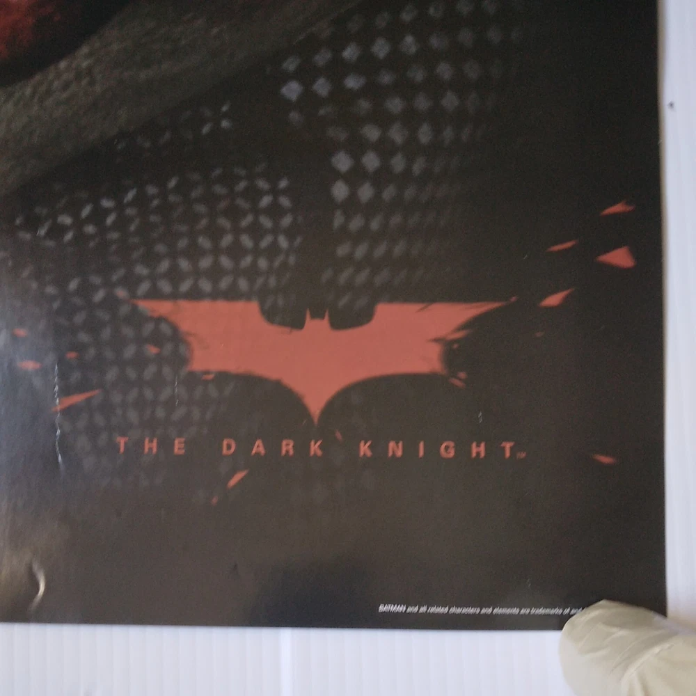 The Dark Knight Joker Movie Poster 34 inches tall by 22 inches wide. This poster is in overall good shape. Has some pinholes and slight wear at the edges. See pictures for a detailed look. Will ship well protected. Thanks for the interest.