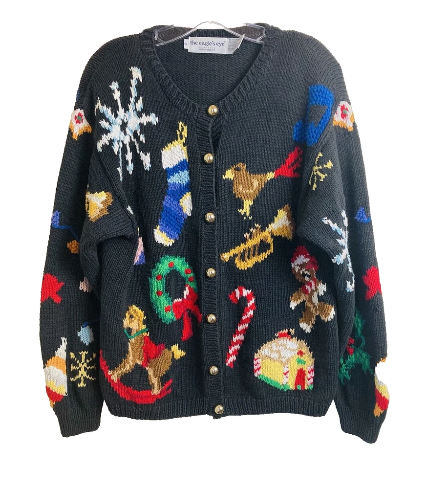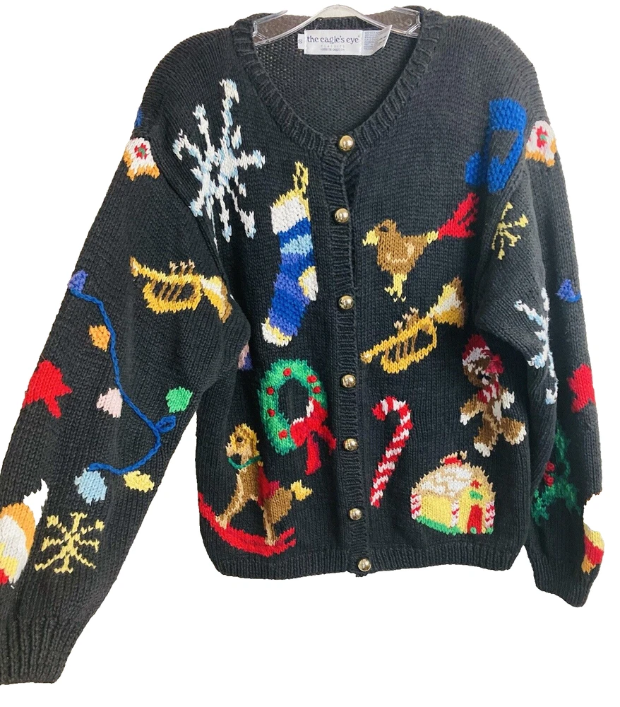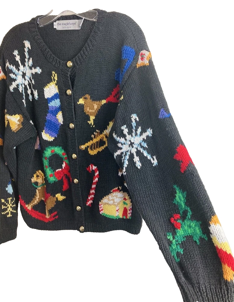The Eagle's Eye Christmas Sweater Women’s Size Small Black. Beautiful Christmas Designs. Pre-Owned in Excellent Condition. Shipped USPS Ground Advantage.