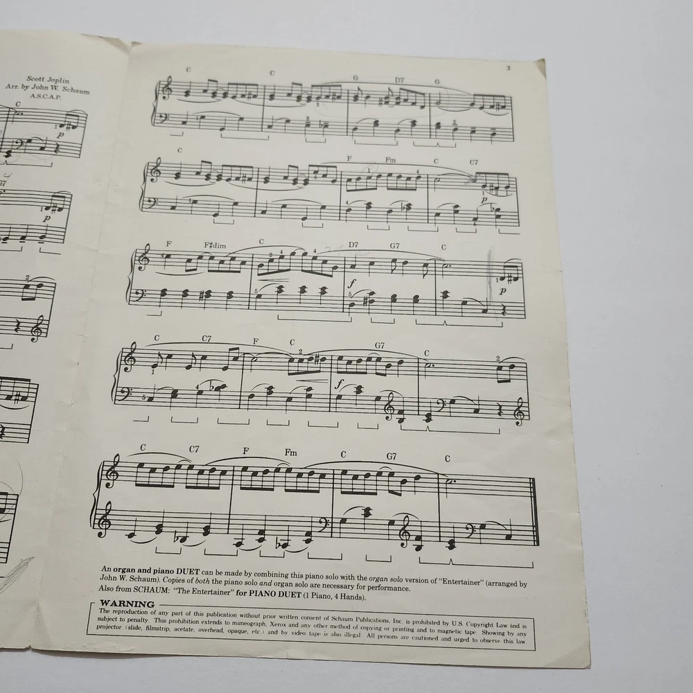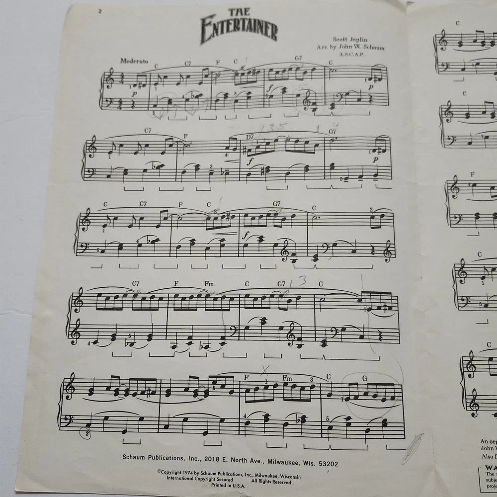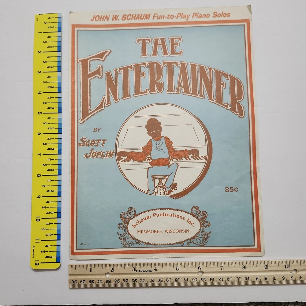 The Entertainer by Scott Joplin Piano Solo Black Americana Sheet Music 1974