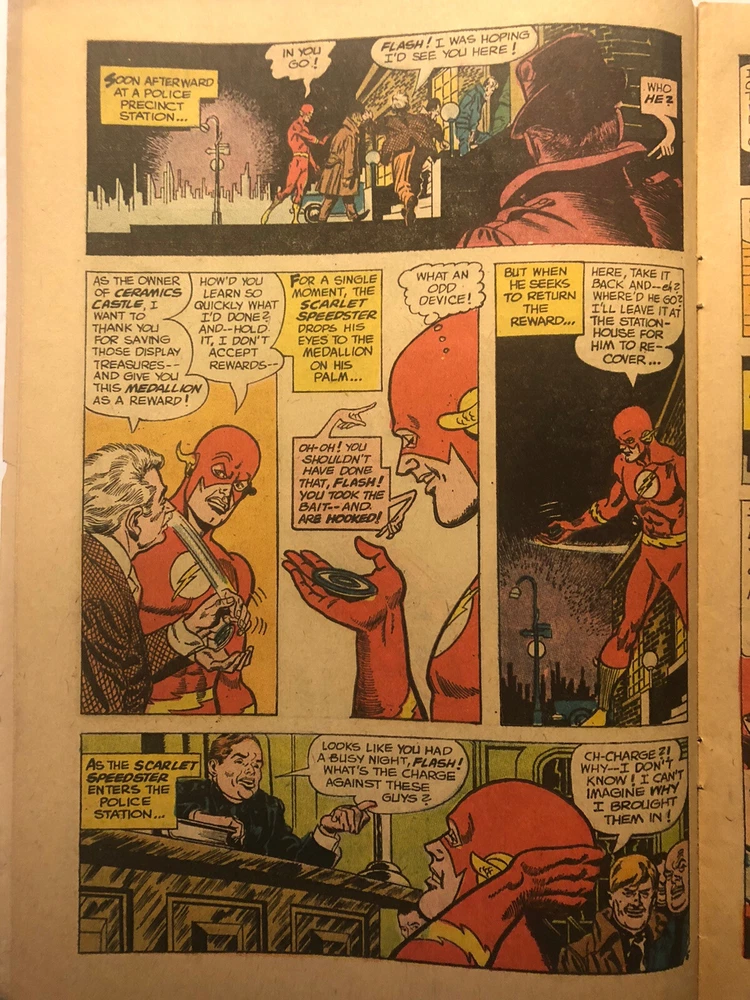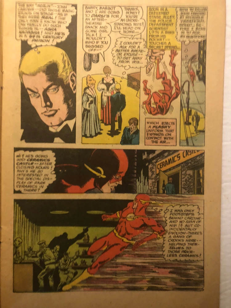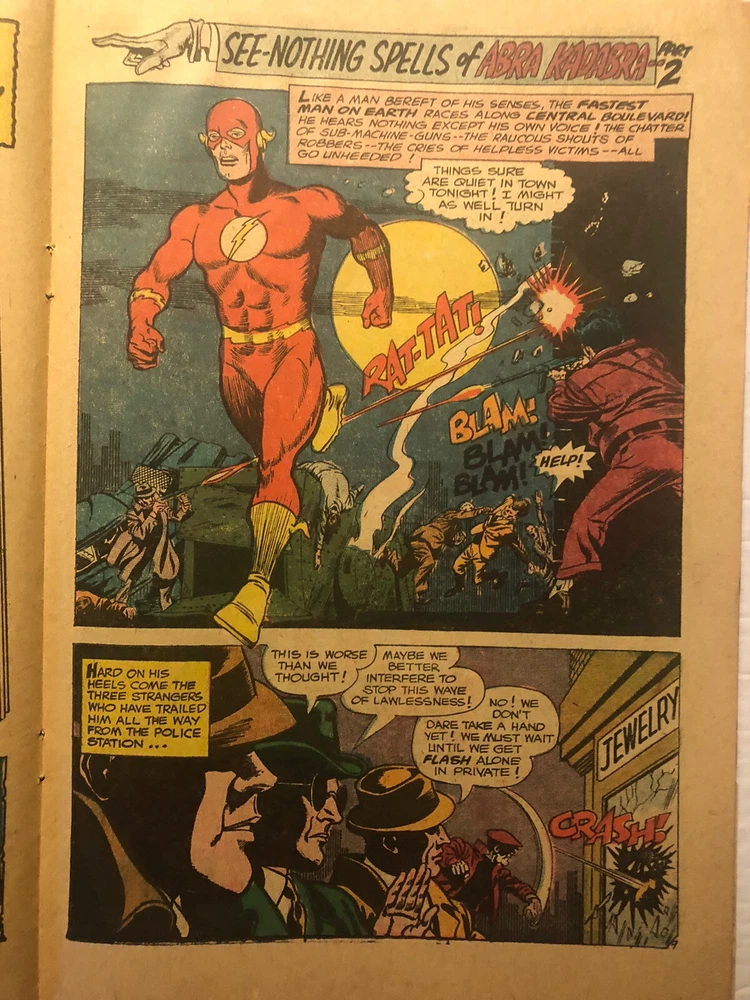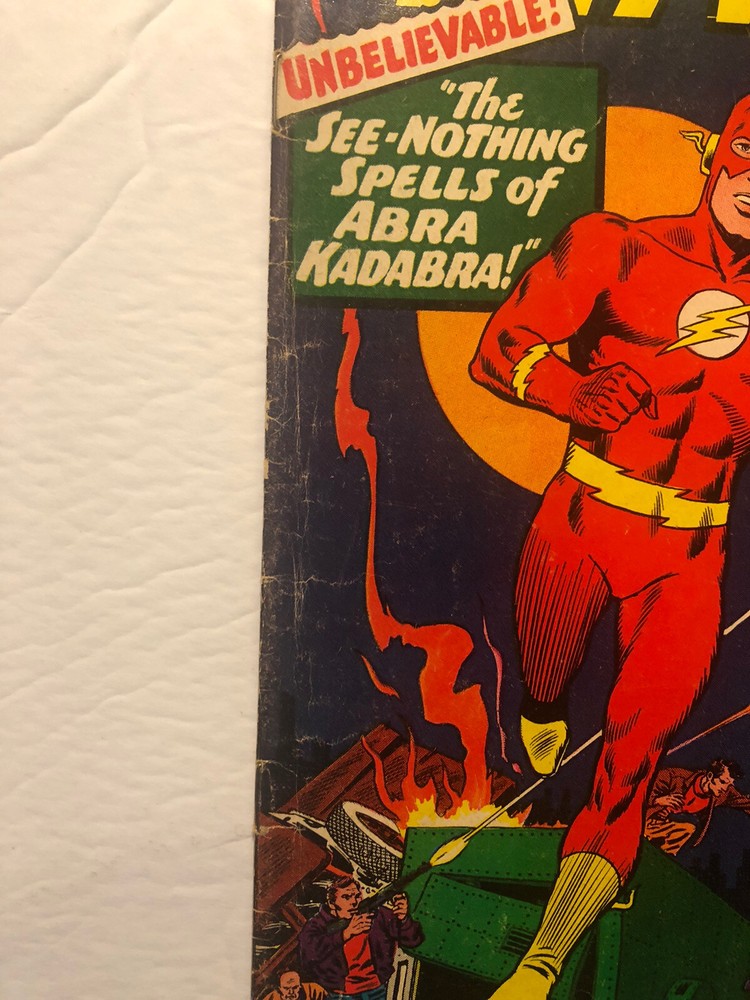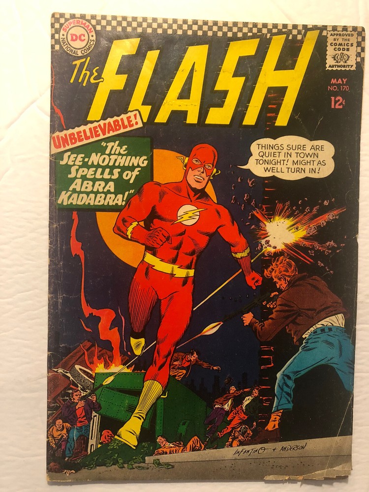 The Flash# 170- The Flash (Barry Allen ) faces the evil Abra Kadabara who takes aways Barry's ability to speak, see and hear. This presents a unusual problem for the Flash who must rely even more on his title as the Fastest Man on Earth. He also has help from Earth -2, including Dr.MIdnight, Dr. Fate and the Flash from Earth -2. - Written by Gardner Fox and artwork by Carmine Infantino. -1967- DC comics.
