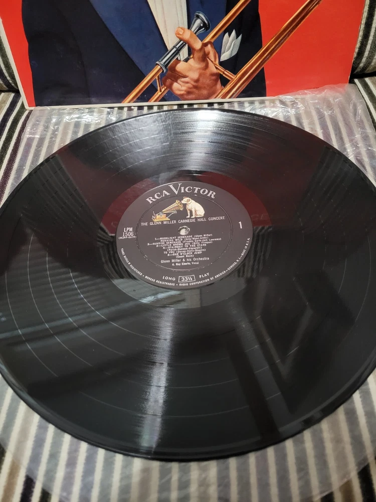 Experience the magic of the iconic Glenn Miller Carnegie Hall Concert, captured on vinyl from 1939 by RCA. This first edition LP features the Glenn Miller Orchestra's big band and swing style, with the legendary trombone player conducting the ensemble. The 12" record, with a black color and cardboard sleeve, boasts a high-fidelity sound quality, making it a must-have for any jazz enthusiast. The excellent (EX) inlay and sleeve grading, along with the very good plus (VG+) record grading, ensures that this vinyl is a valuable addition to any music collection. This original cover LP, with 33 RPM speed and English language, is a rare find for fans of the Glenn Miller Orchestra. Don't miss out on the chance to own a piece of music history!